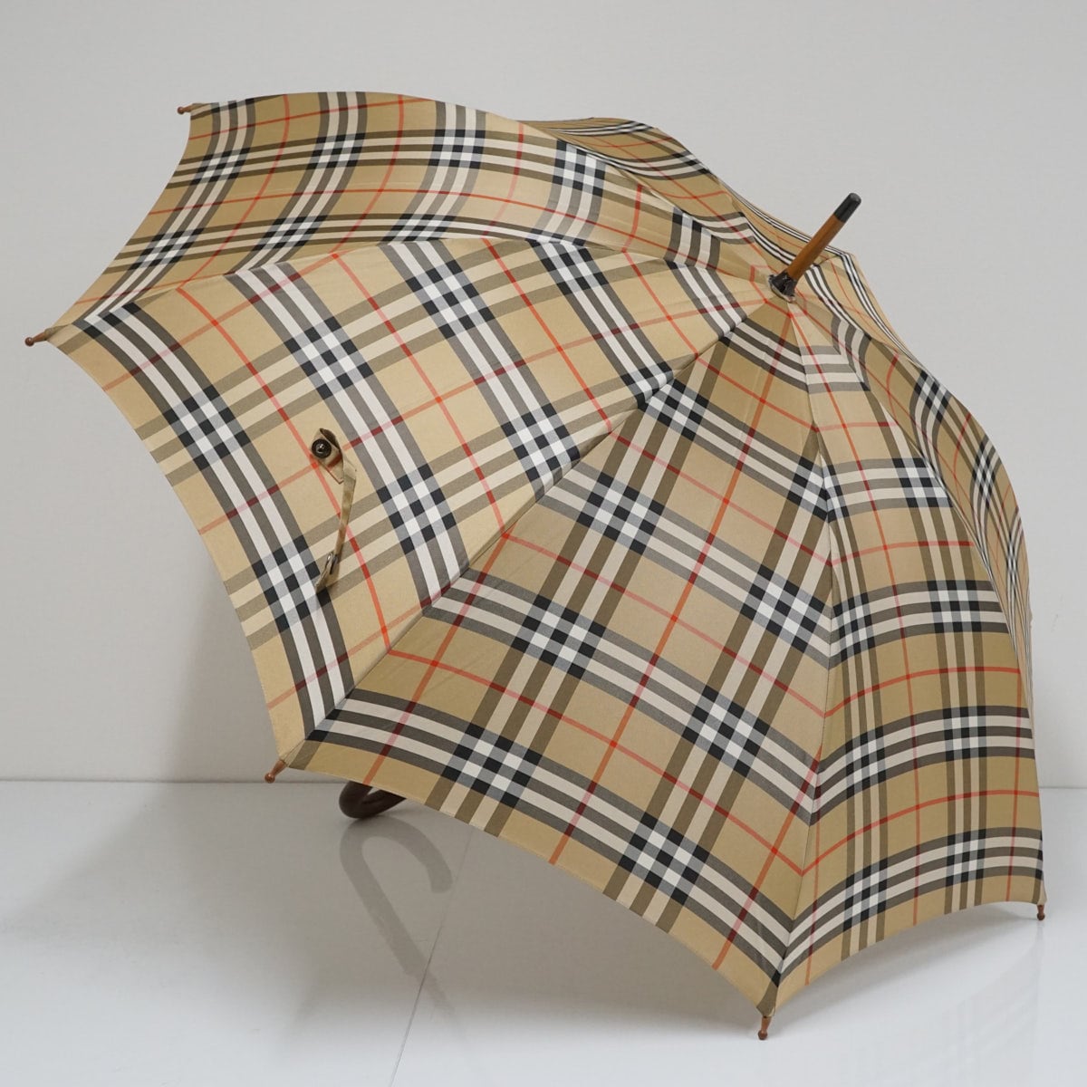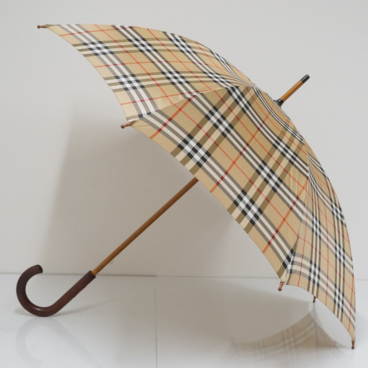 人気ブランド「バーバリー」の定番チェック柄がデザインされた雨傘です。
