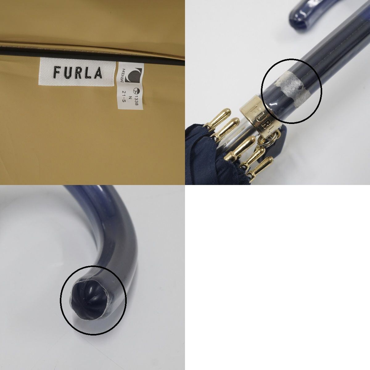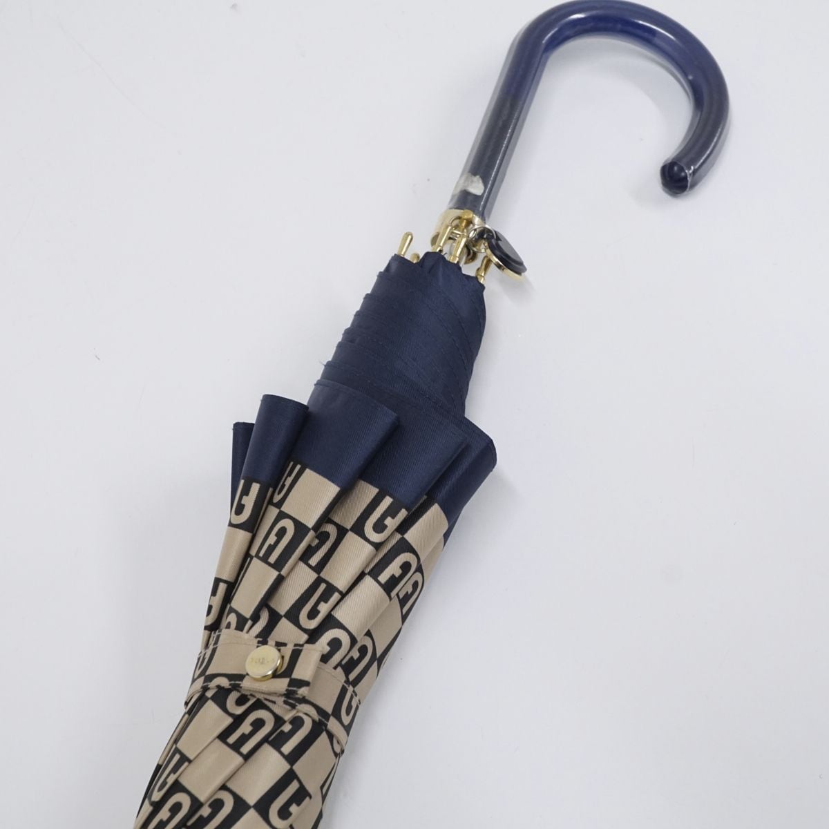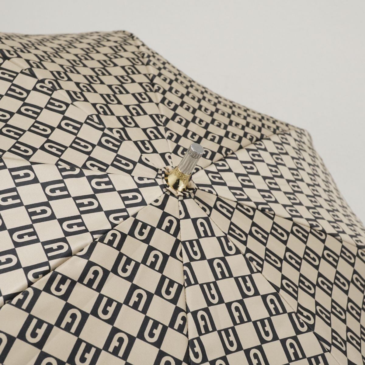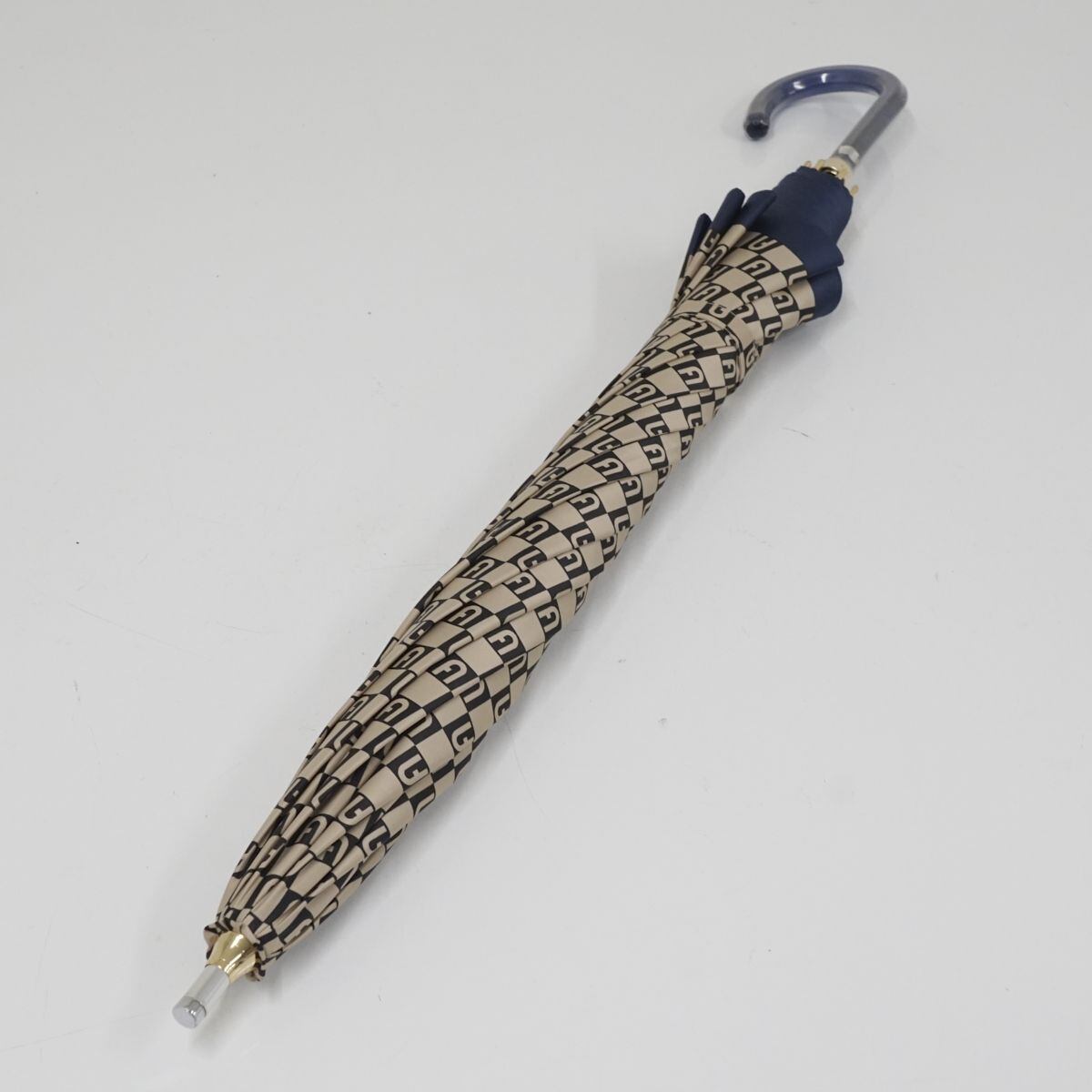 晴雨兼用日傘 FURLA フルラ USED美品 UV ベージュ ネイビー グラス骨 58cm S0759