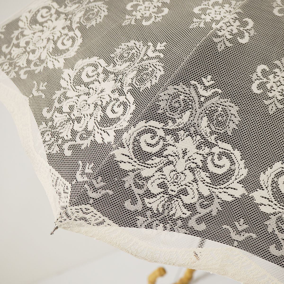 ブラックの遮光生地を、ダマスクデザインが素敵なライトベージュのレースヴェールで包んだ逸品です。