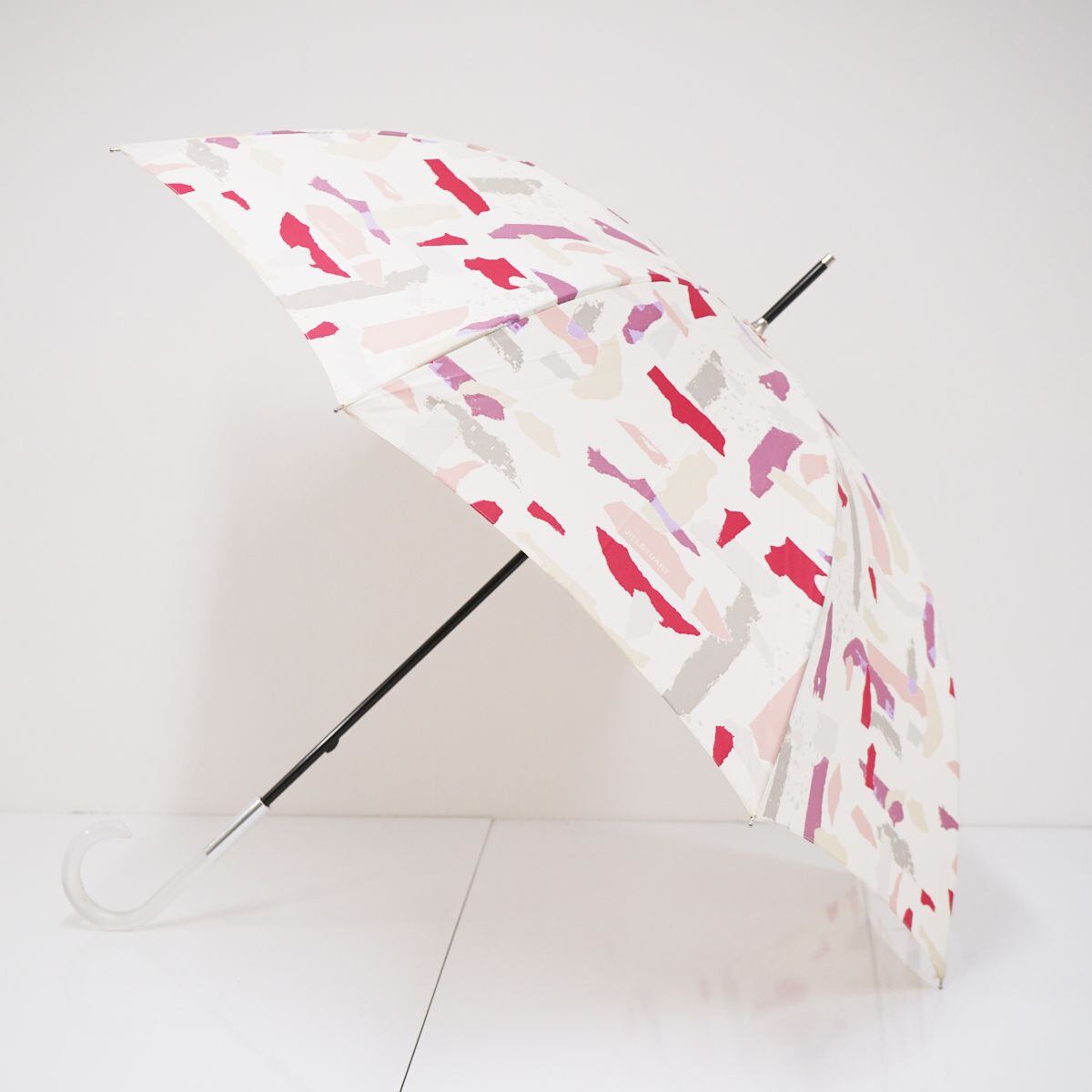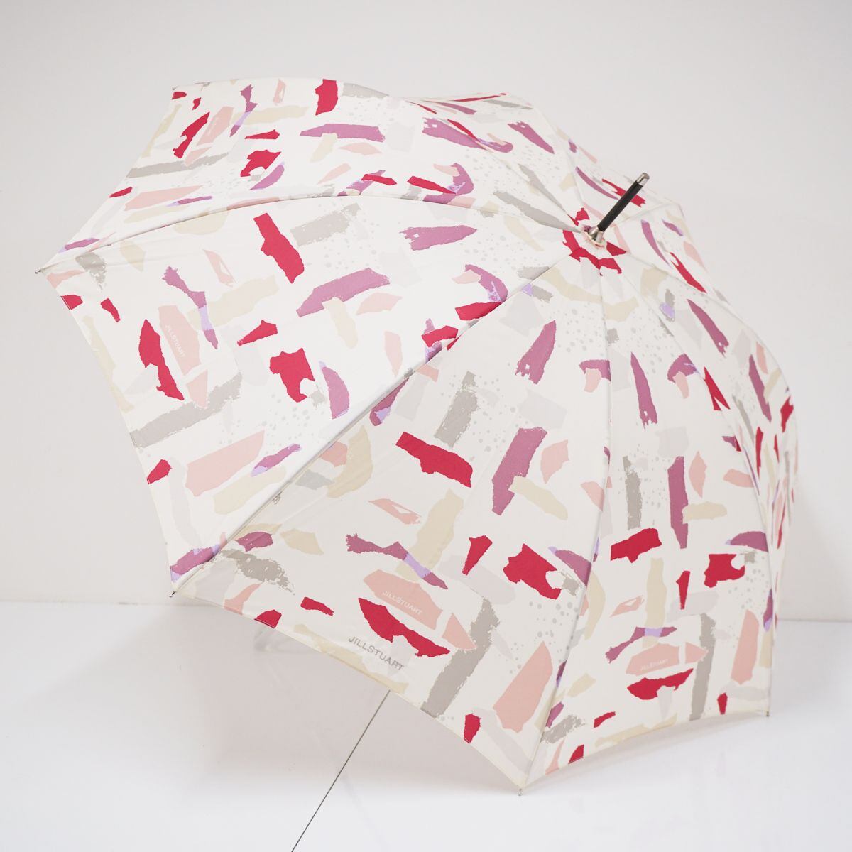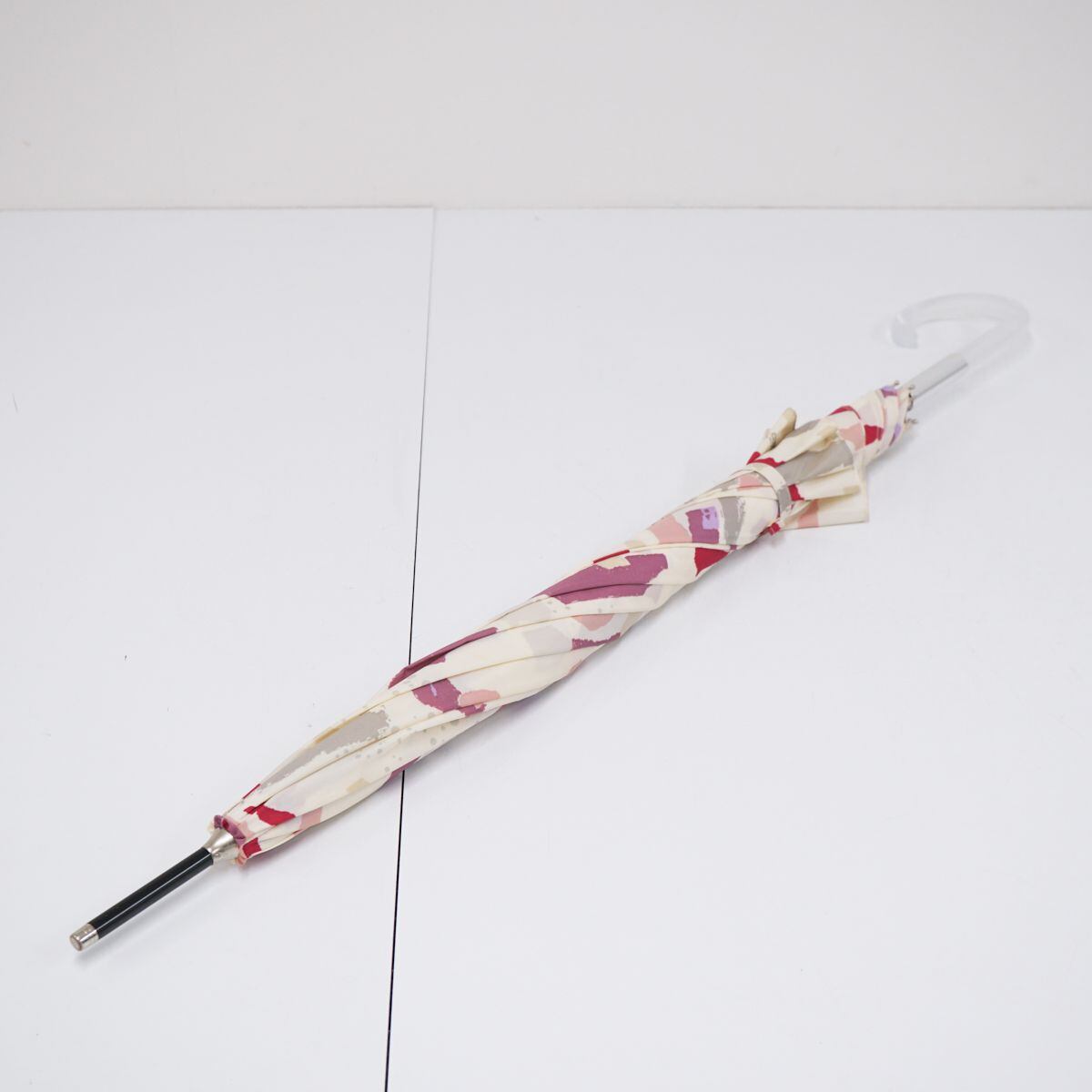 傘 JILL STUART ジルスチュアート USED美品 ピンク アート グラフィック クリア手元 グラス骨 60cm A0785