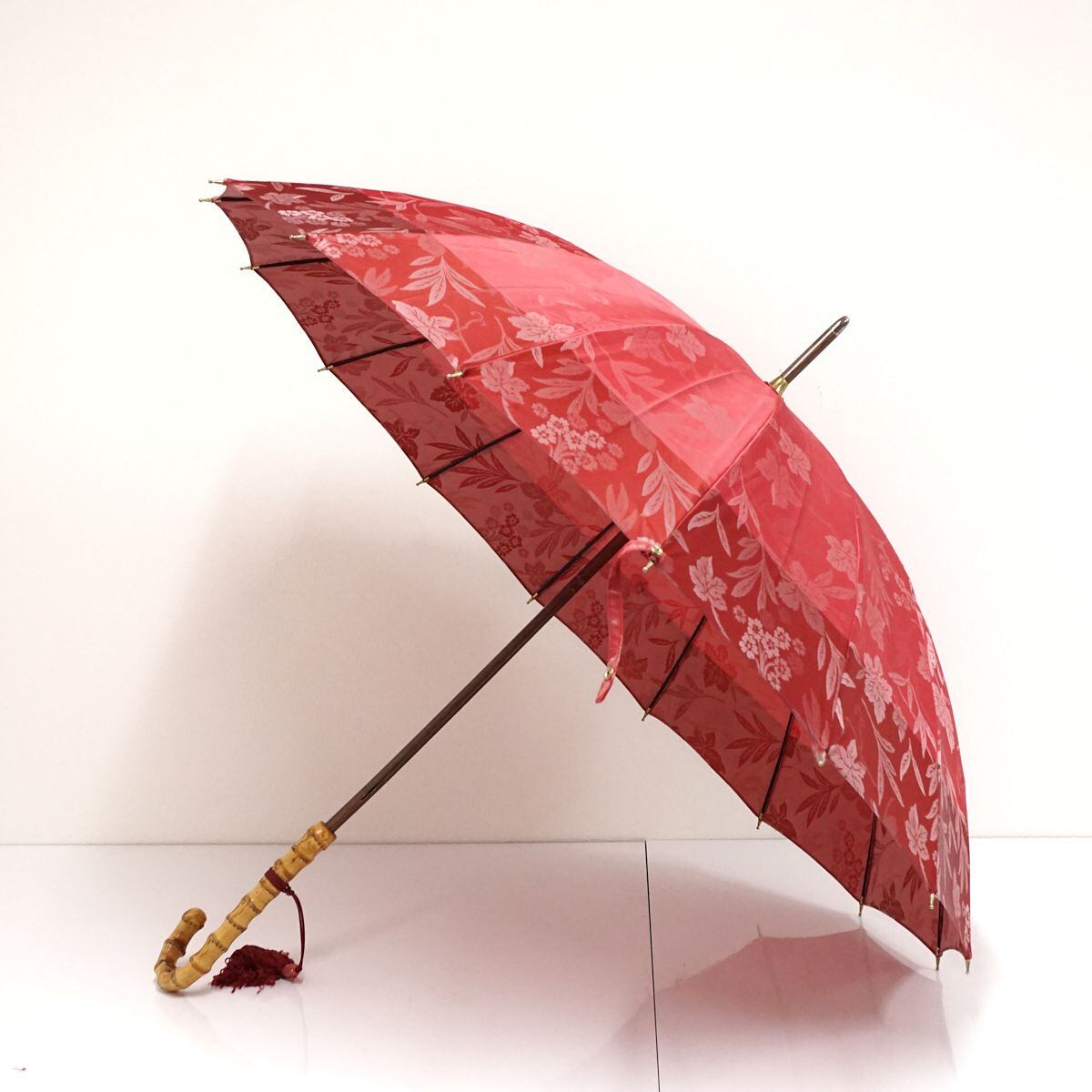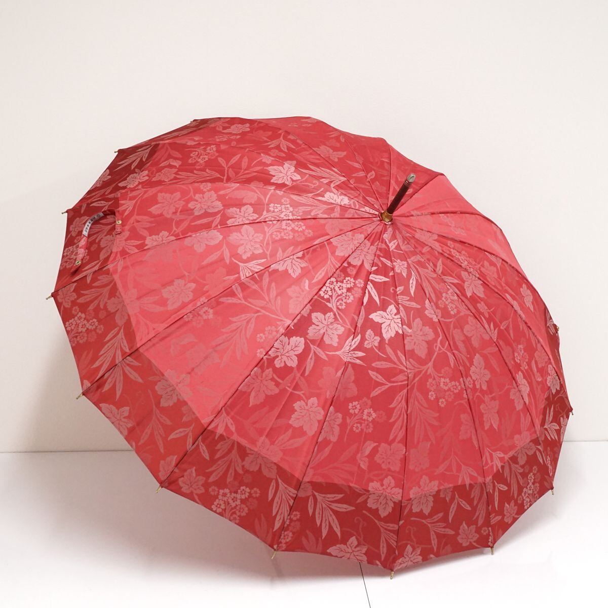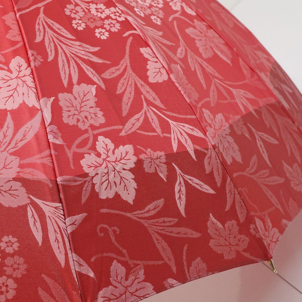 高級傘 前原光榮商店 USED美品 フィオーレ ワイン ボタニカル柄 ジャガード織 ツートンカラー 16本骨 日本製 55cm S0775