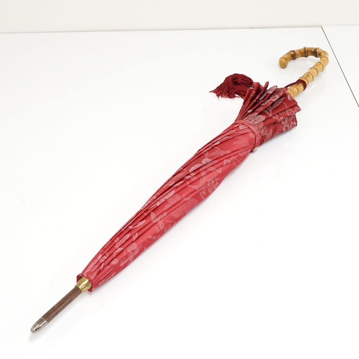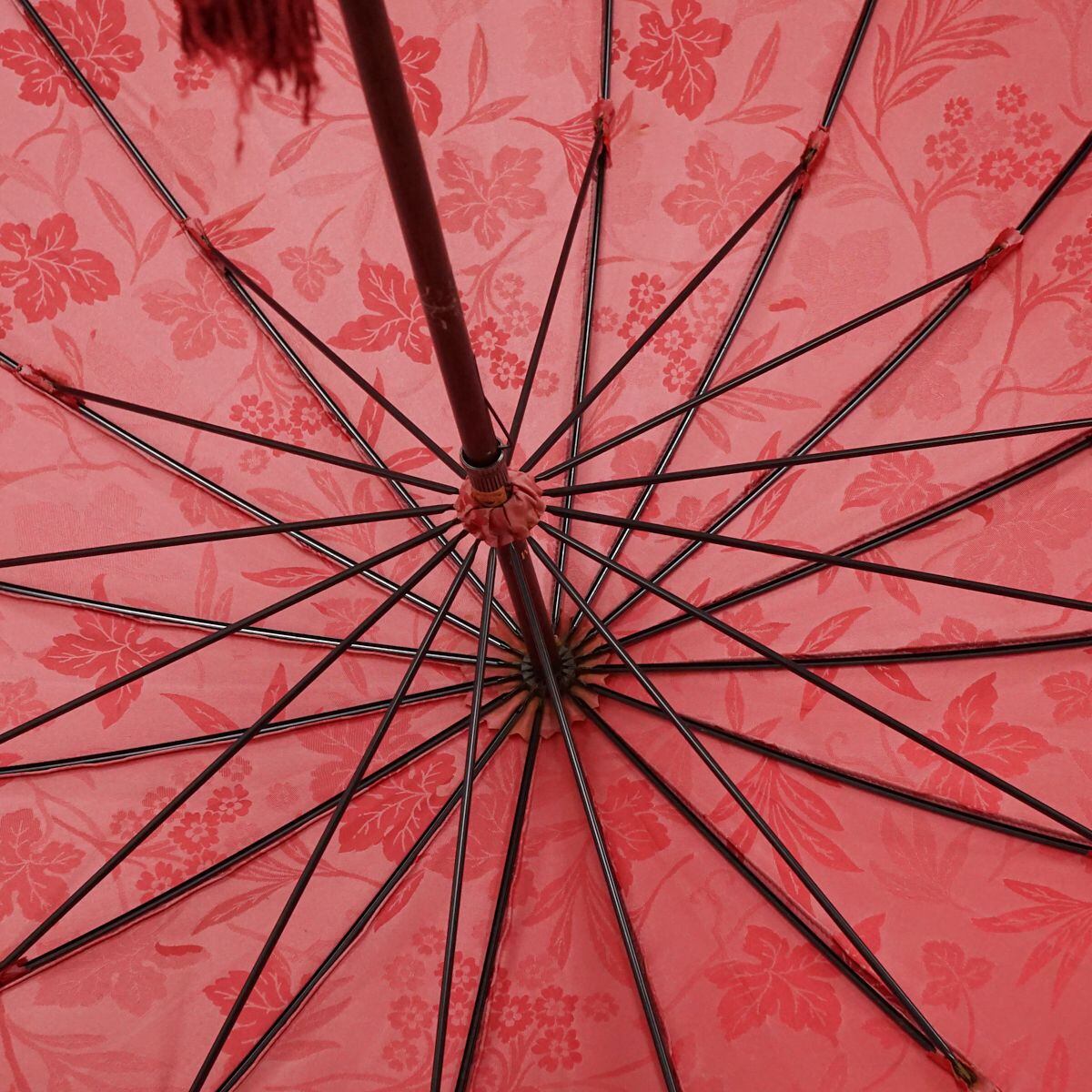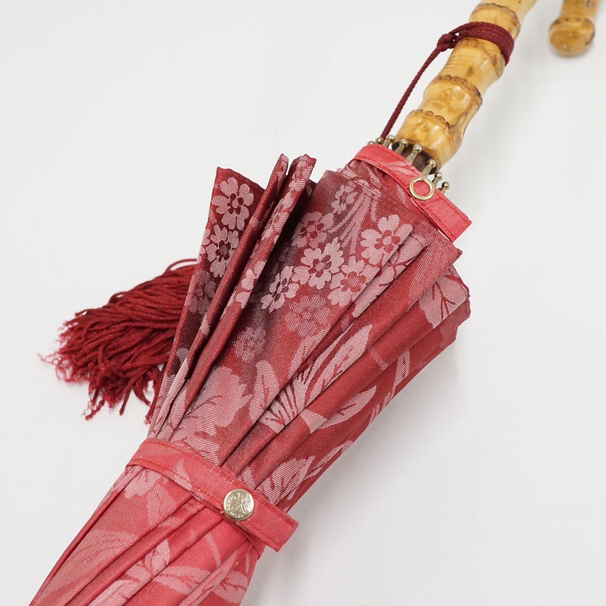 高級傘 前原光榮商店 USED美品 フィオーレ ワイン ボタニカル柄 ジャガード織 ツートンカラー 16本骨 日本製 55cm S0775