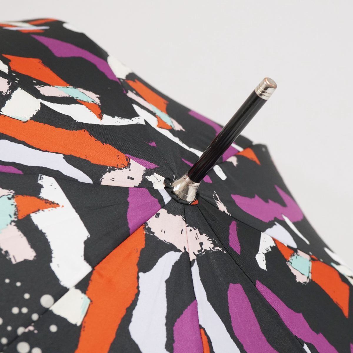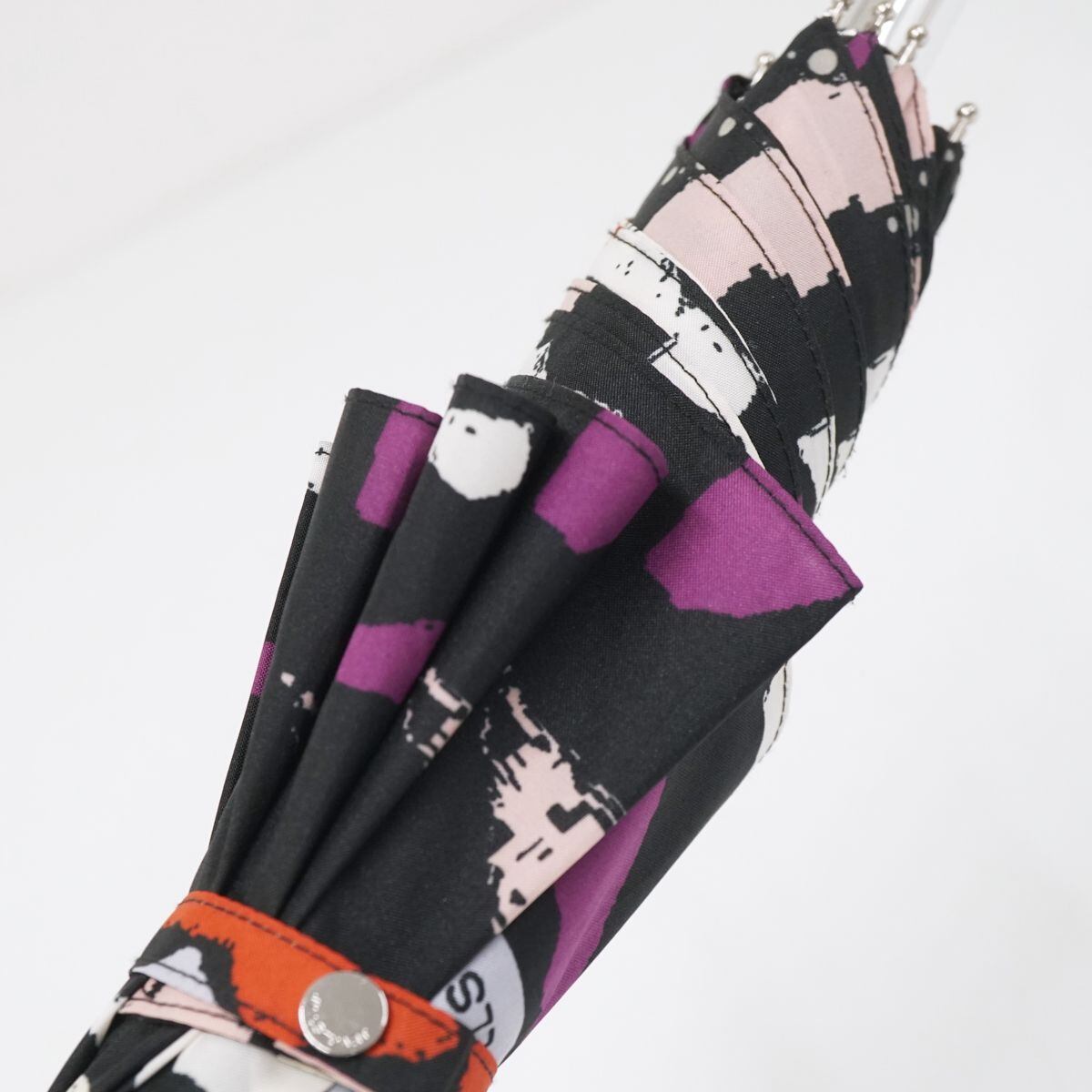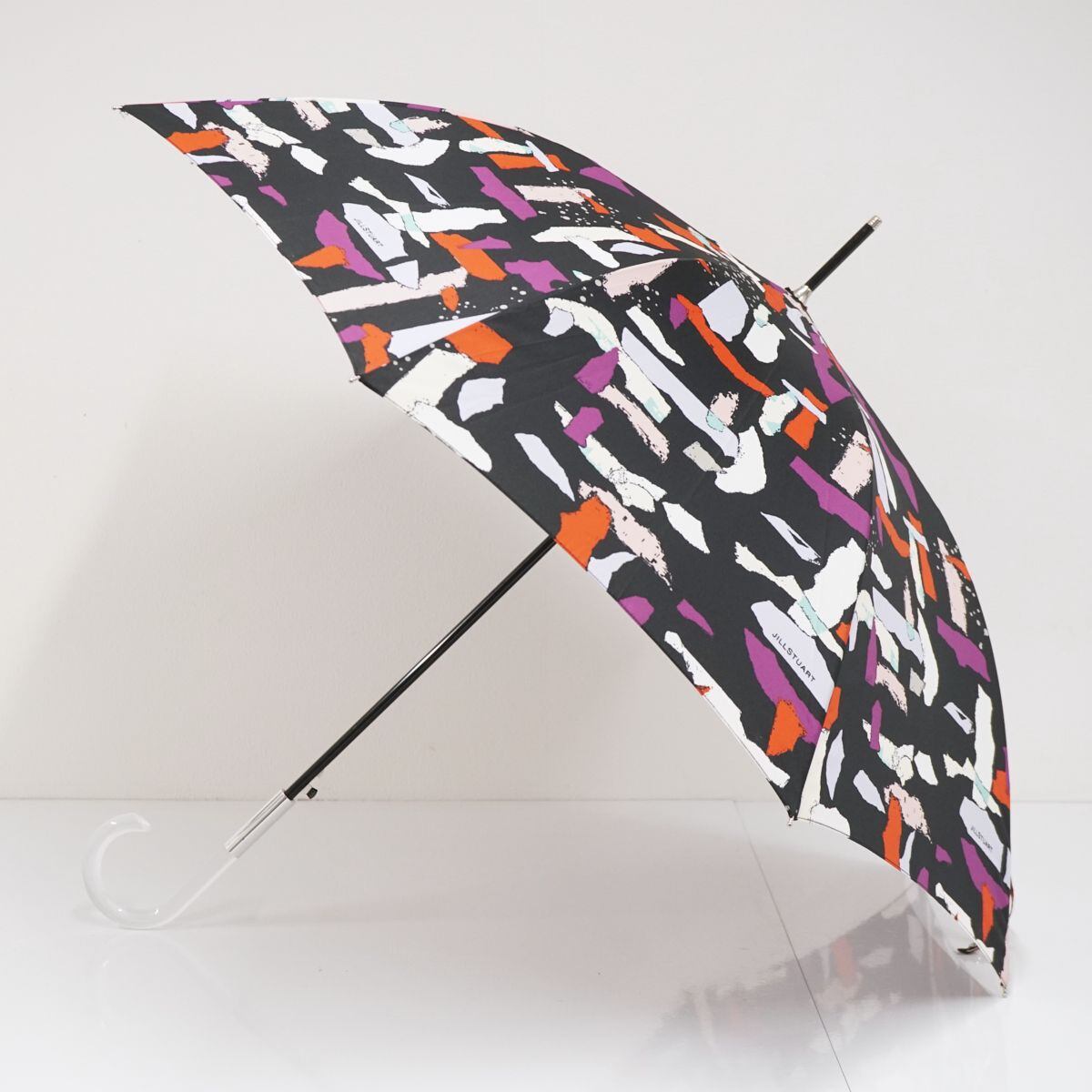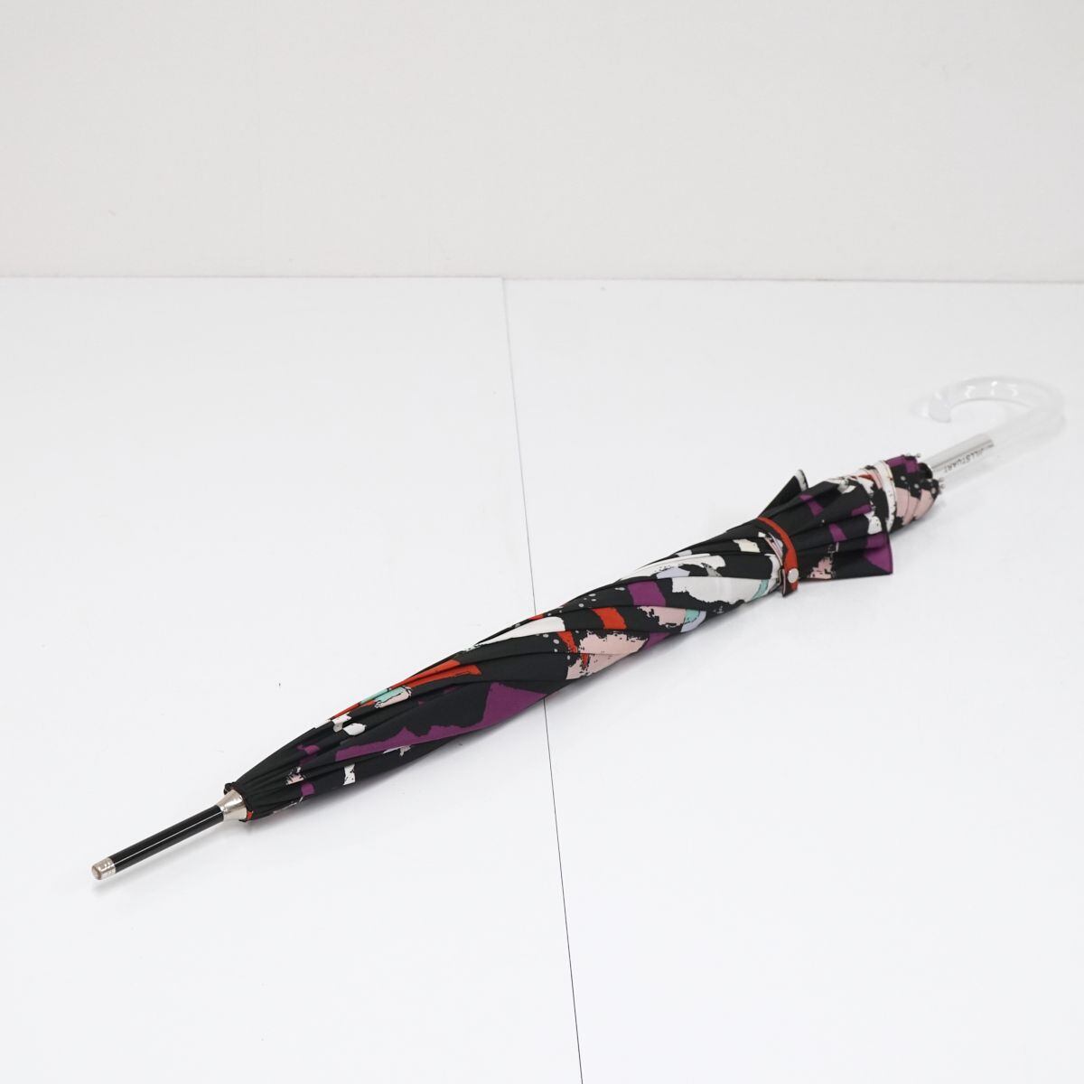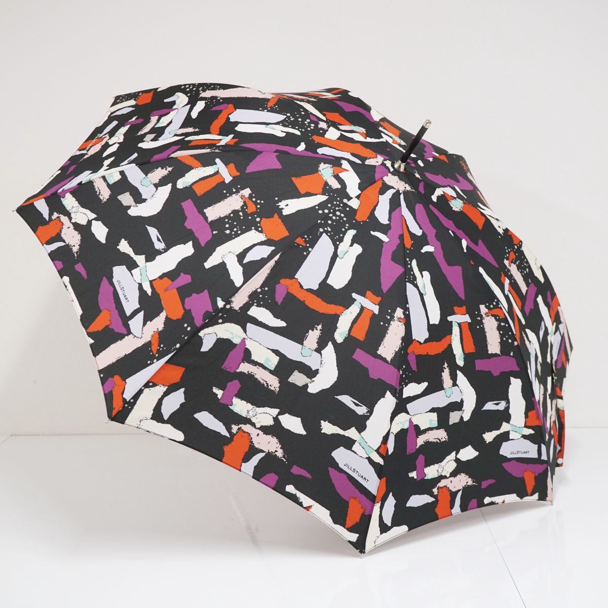 傘 耐風 JILL STUART ジルスチュアート USED美品 ブラック系 アート グラフィック クリア手元 グラス骨 60cm A0715