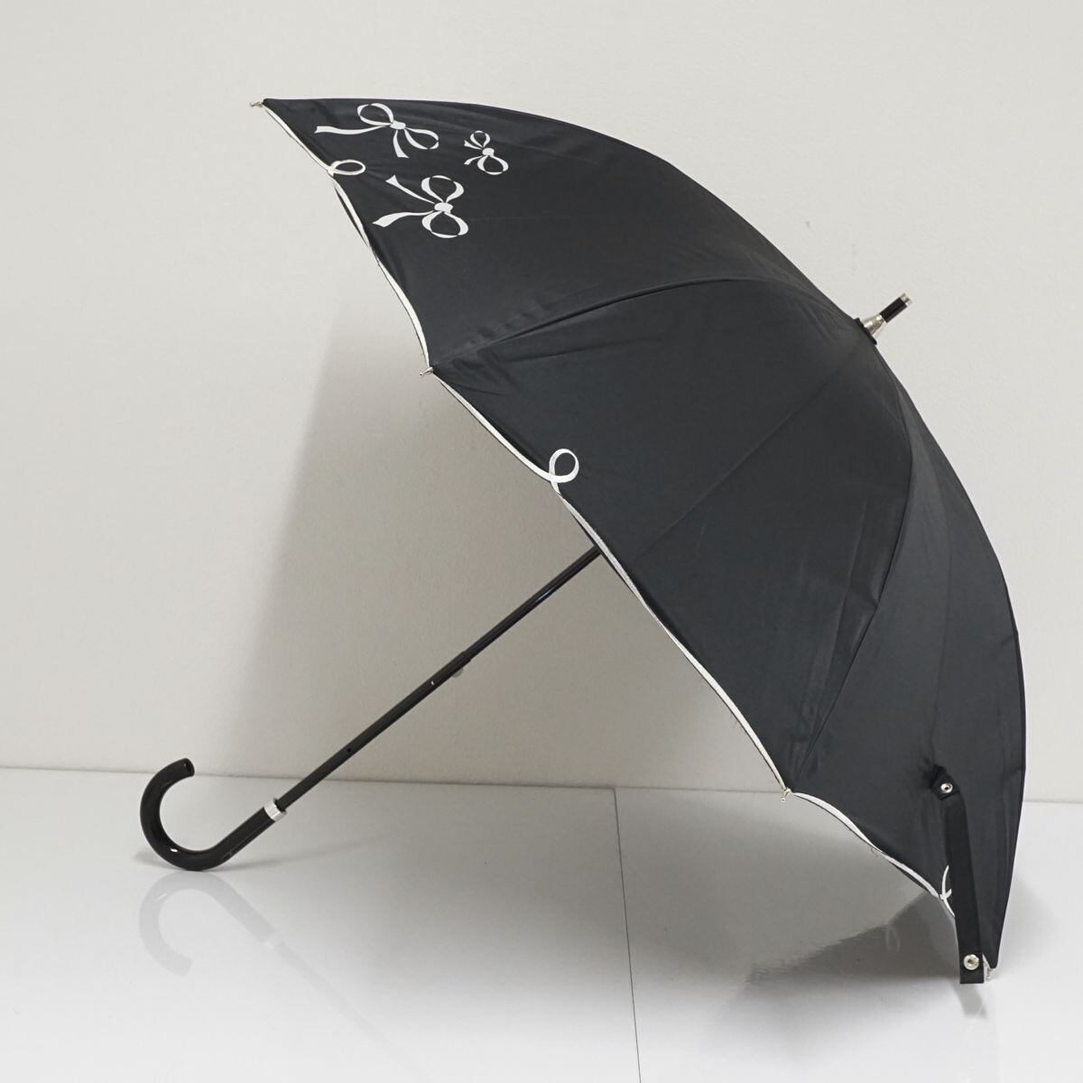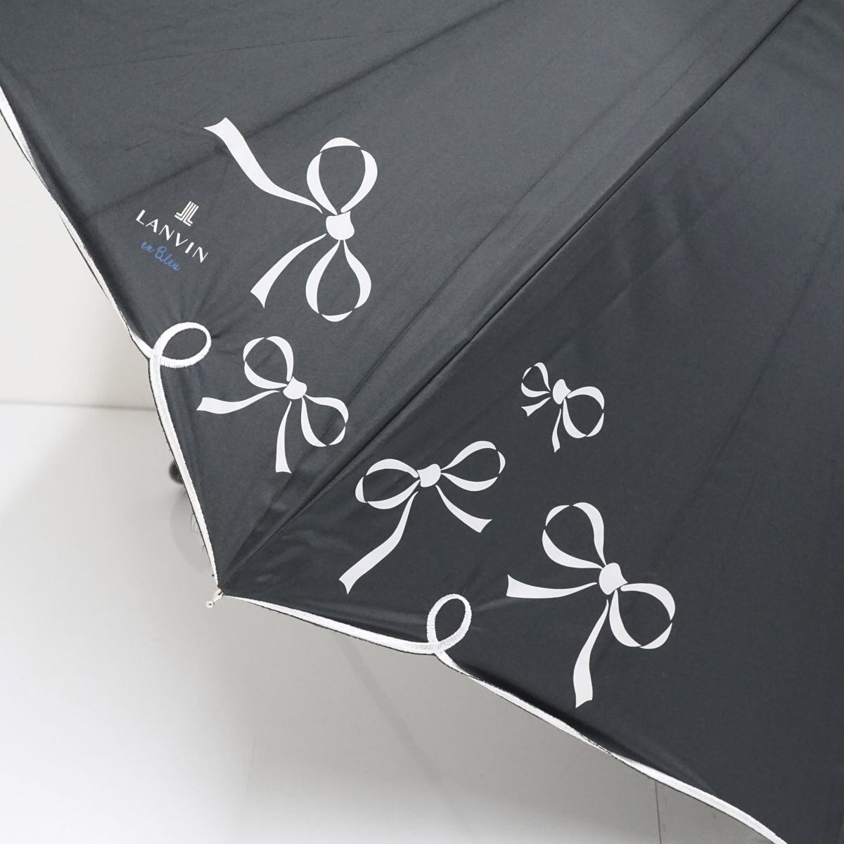 晴雨兼用日傘 LANVIN en Bleu ランバンオンブルー USED美品 ブラック リボン ブランド 50cm A0762
