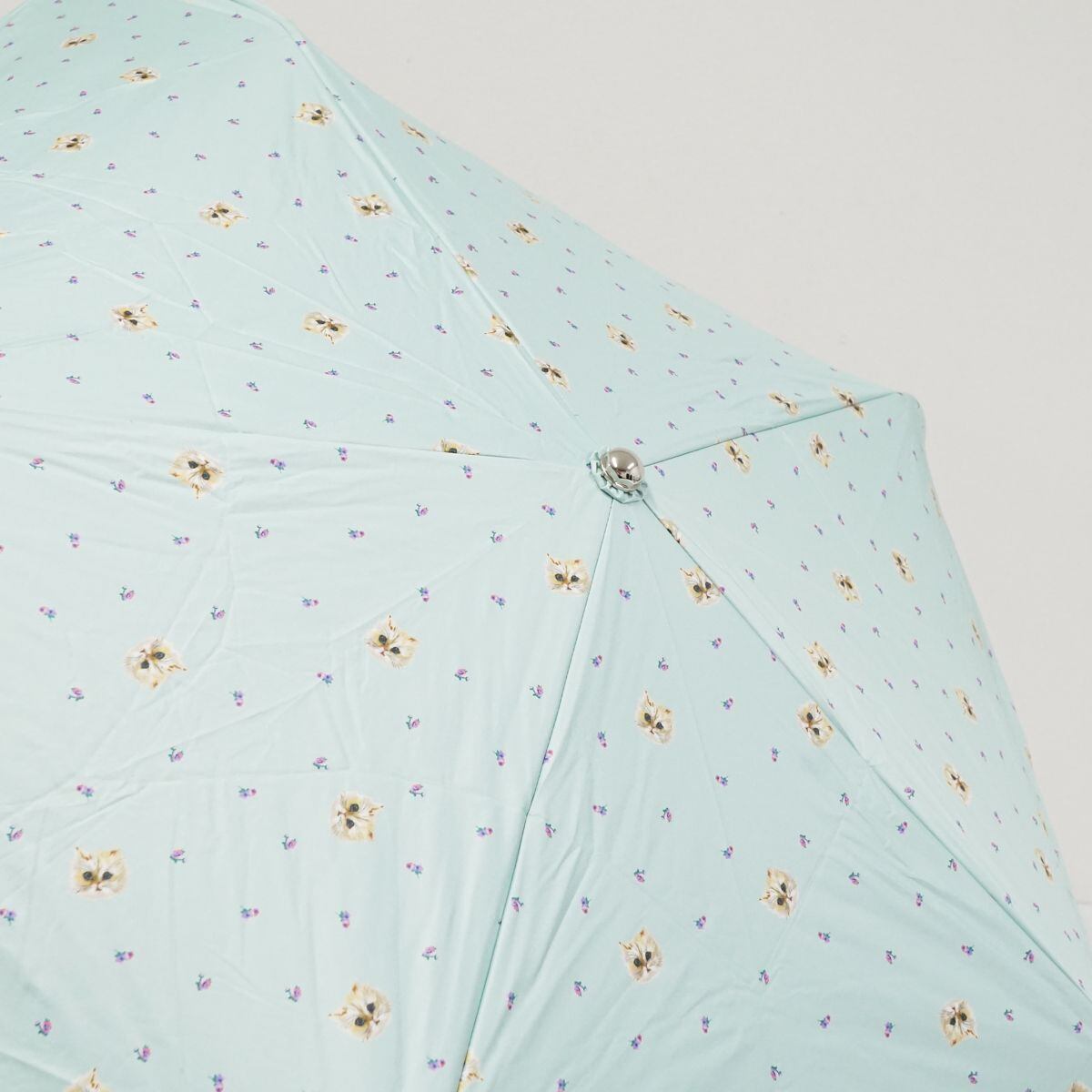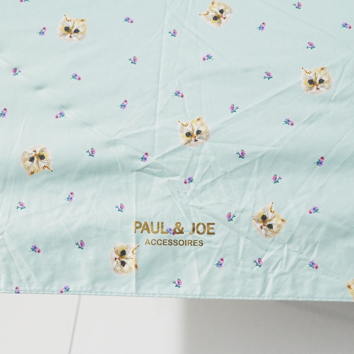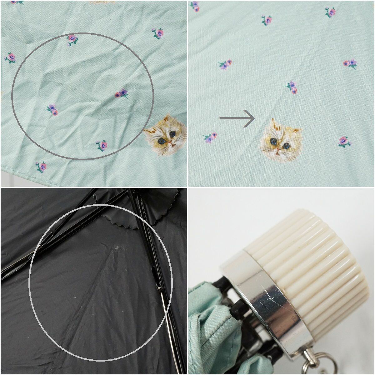 折りたたみ日傘 PAUL&JOE ポールアンドジョー USED品 晴雨兼用 折日傘 ジプシー ミントグリーン ネコ かわいい UV 50cm FA8449