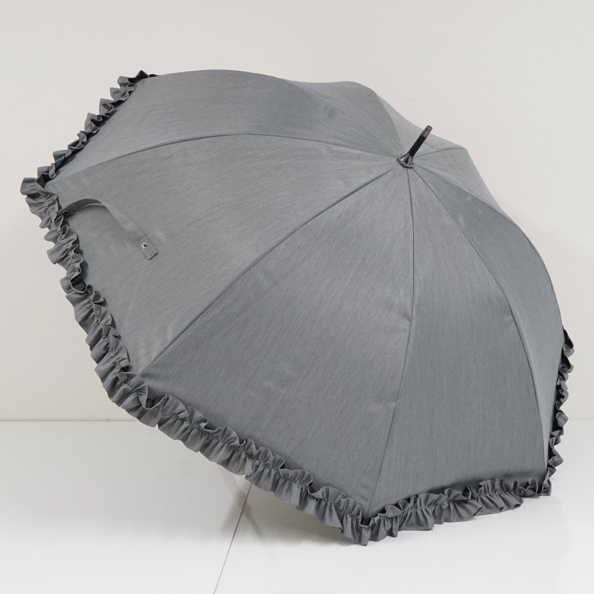 日傘 サンバリア100 完全遮光日傘 USED品 フリル フロスト グレー UV 遮光 遮熱 Mサイズ 55cm S2837