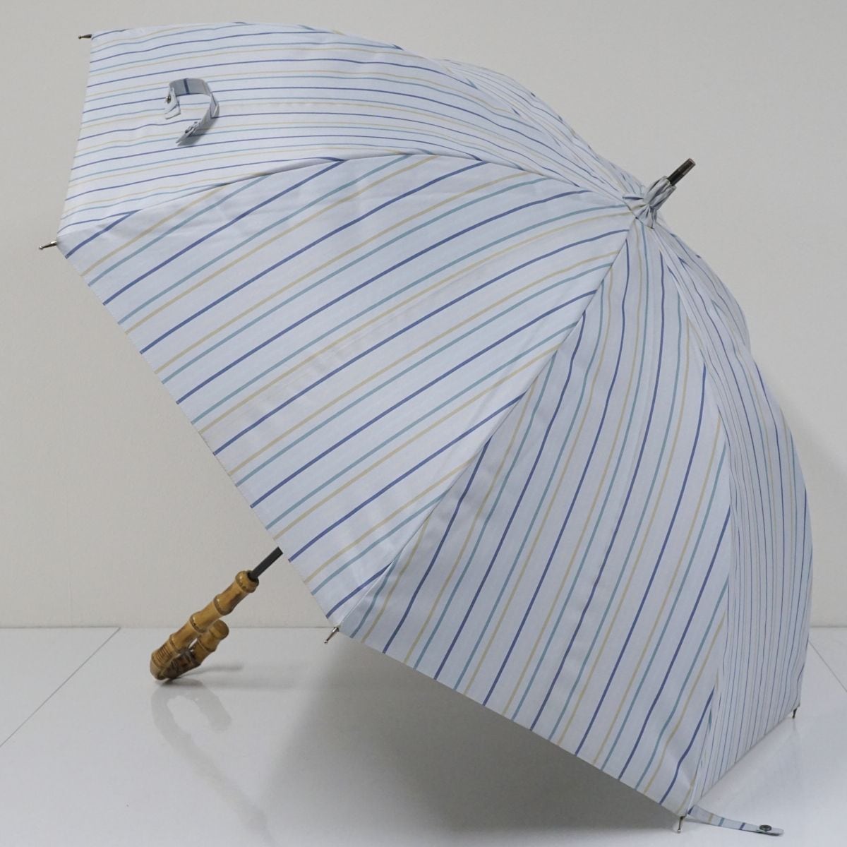 日傘 サンバリア100 完全遮光日傘 USED品 ブルー ストライプ UV 遮光 遮熱 Lサイズ 60cm S0798