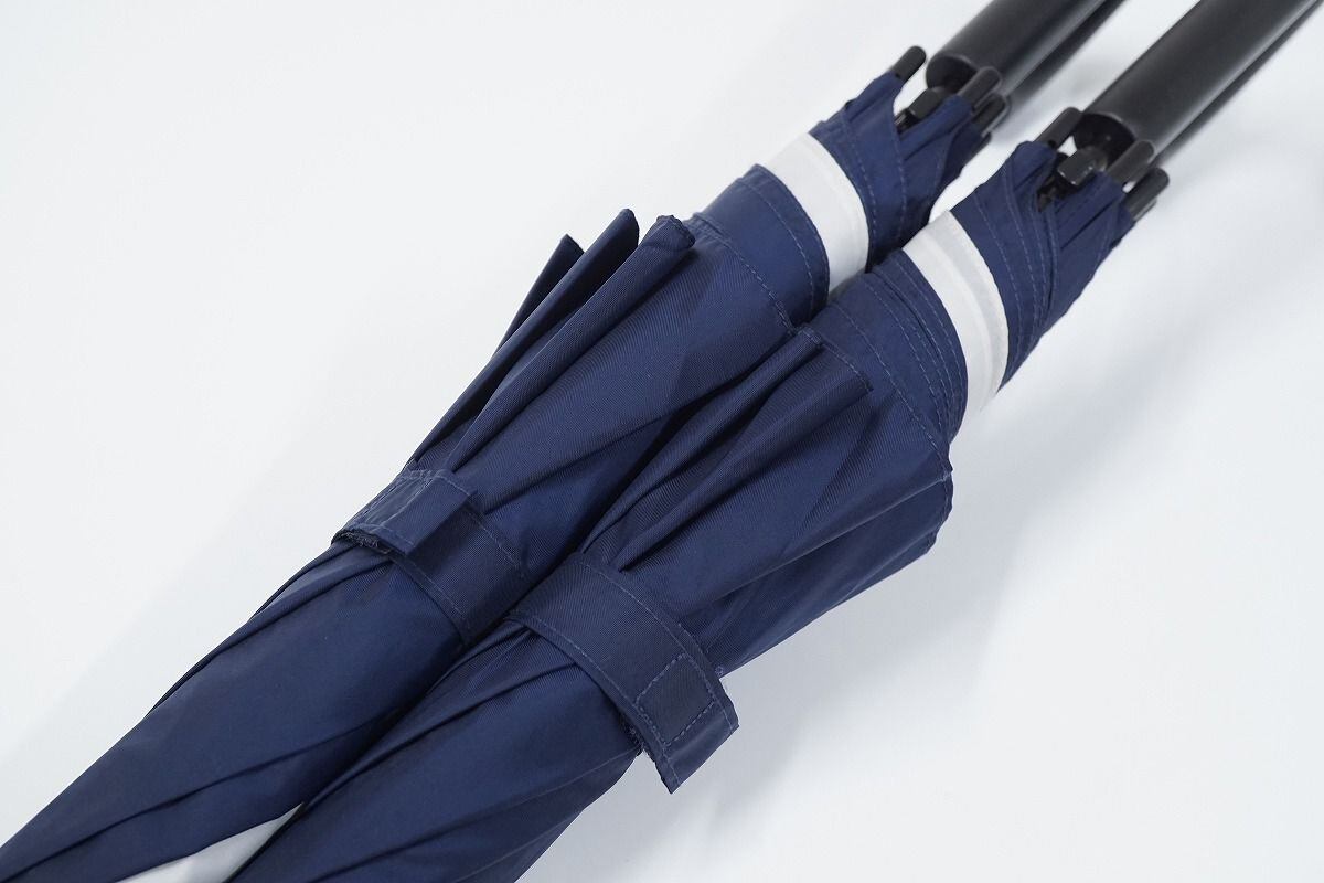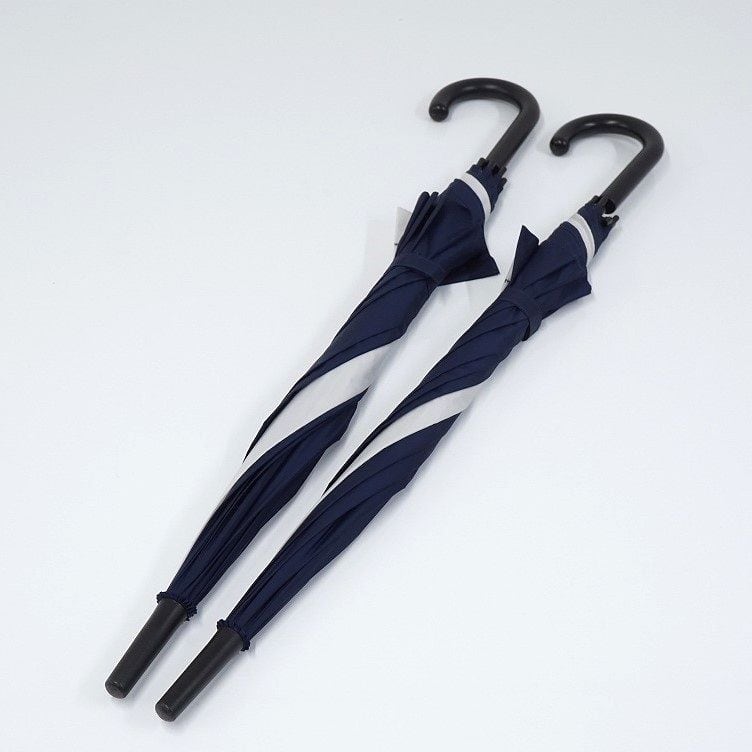 お色はネイビーの2本セットで、側面にワンポイントのシンプルなデザインですので、通学用の傘としてもお使いいただけます。