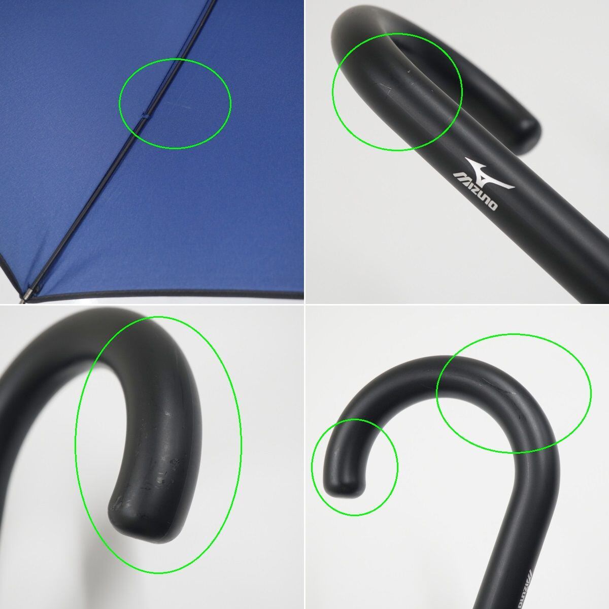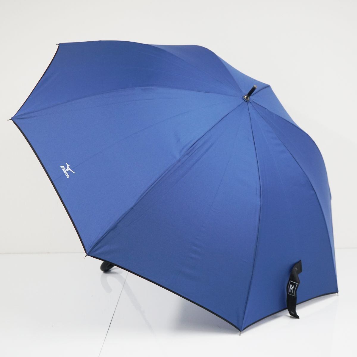 傘 MIZUNO ミズノ USED美品 ロゴ パイピング 耐風傘 紳士傘 ブルー 青 パイピング ジャンプ 大判 65cm KR A0809