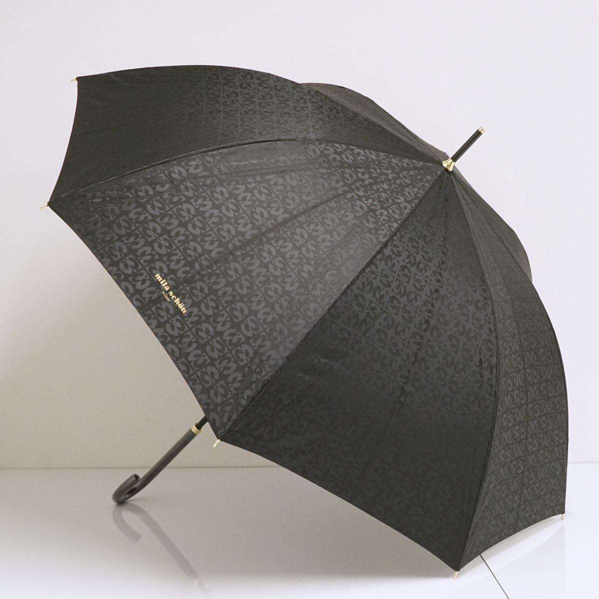 傘 mila schon ミラショーン 耐風傘 USED美品 ロゴジオメトリー ブラック ジャンプ ブランド 60cm A0825