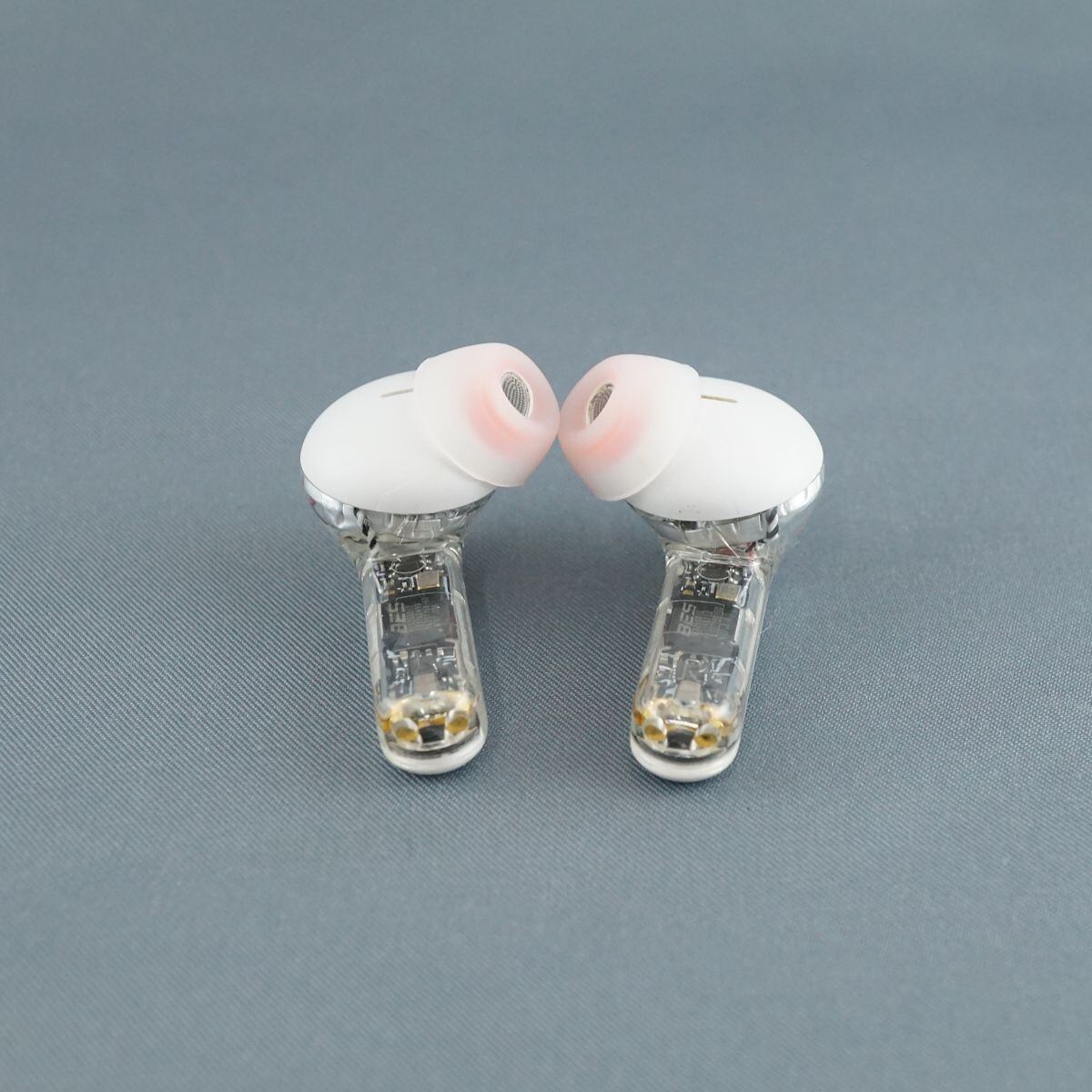 高い透明感が目を引くメカニカルなスケルトンデザイン採用したワイヤレスイヤホン。