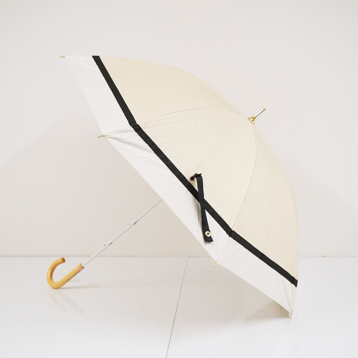 日傘 晴雨兼用 millys mail ミリーズメール USED美品 ライトベージュ パイピング リボン UV 遮光 50cm BT0816