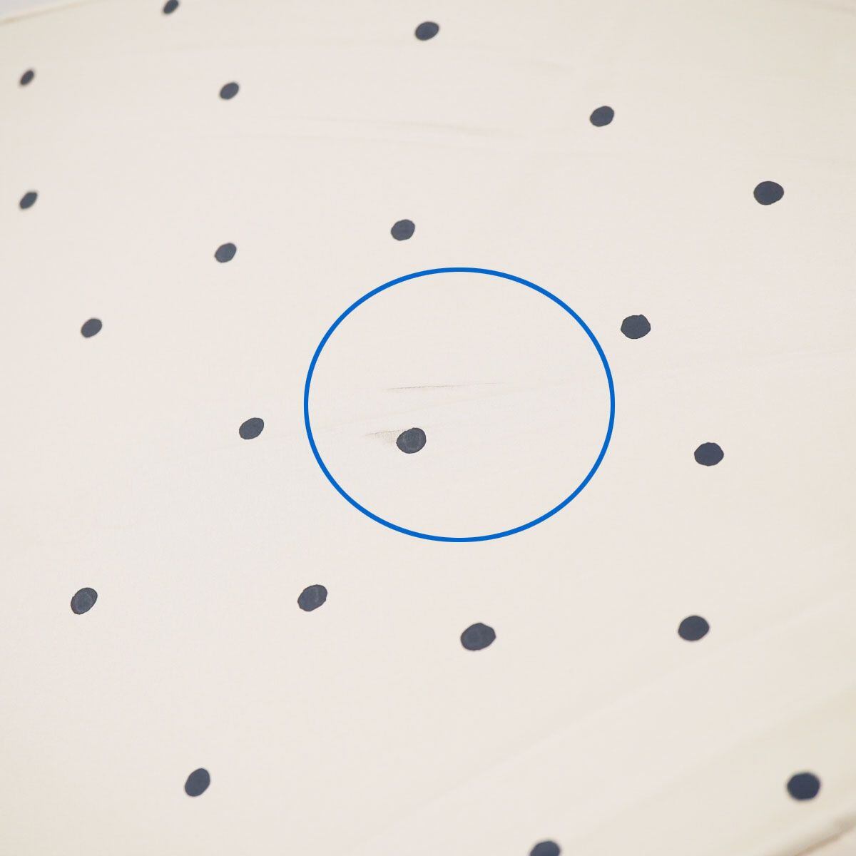 ライトベージュの生地にブラックのドット柄を全面にプリントした