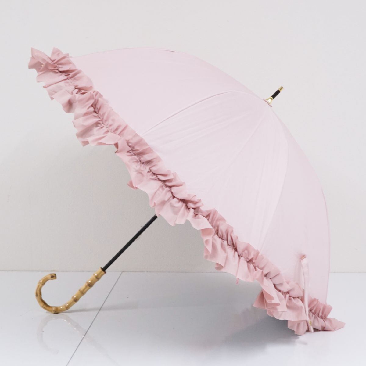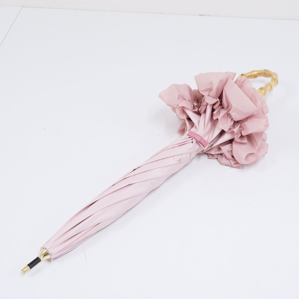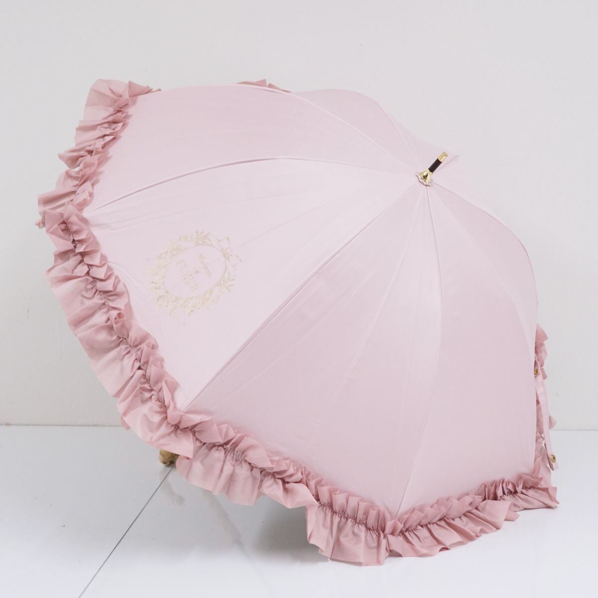 傘 Maison de FLEUR メゾンドフルール USED美品 ピンク ギャザーフリル 深張り ロリータ UV 47cm A0849