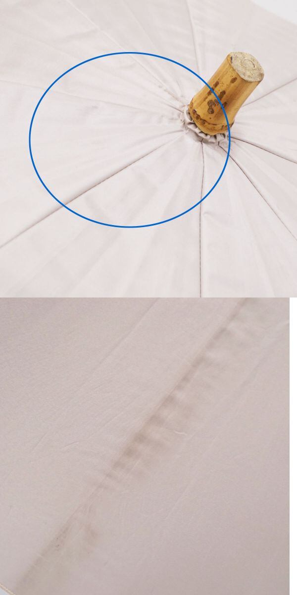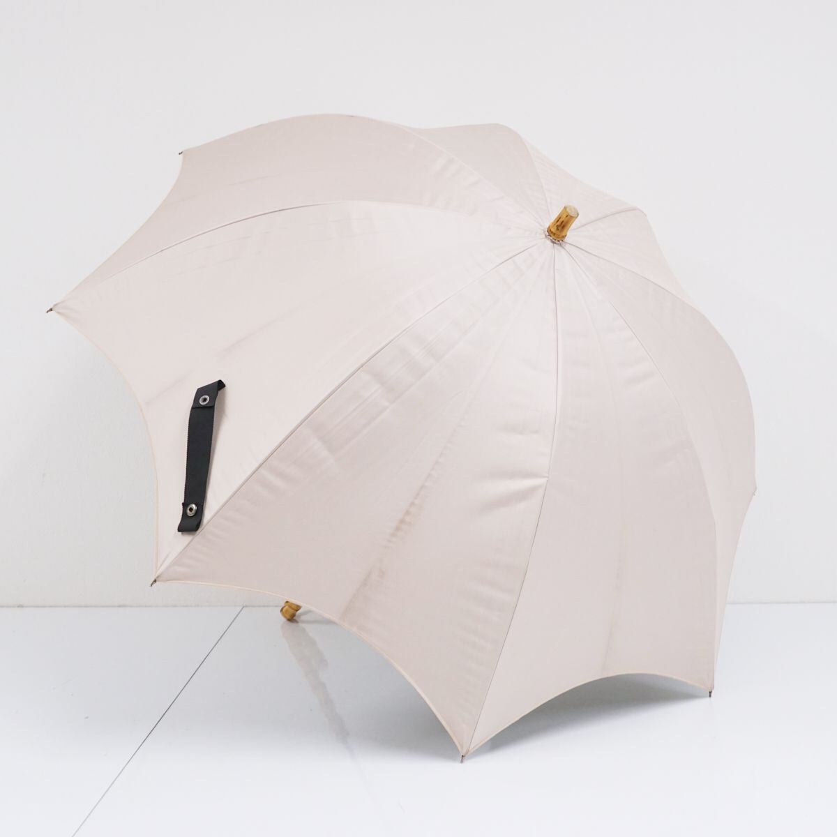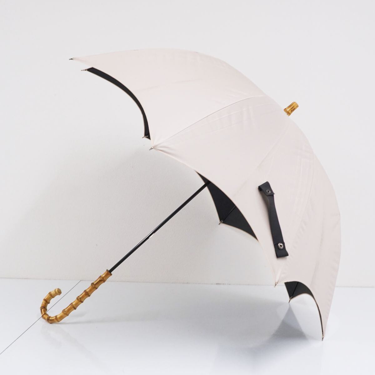 日傘 (株)ソレイユ 晴雨兼用 傘 USED美品 ドーム型 前衛的 完全遮光 刺繍 ベージュ 58cm UV BT0842