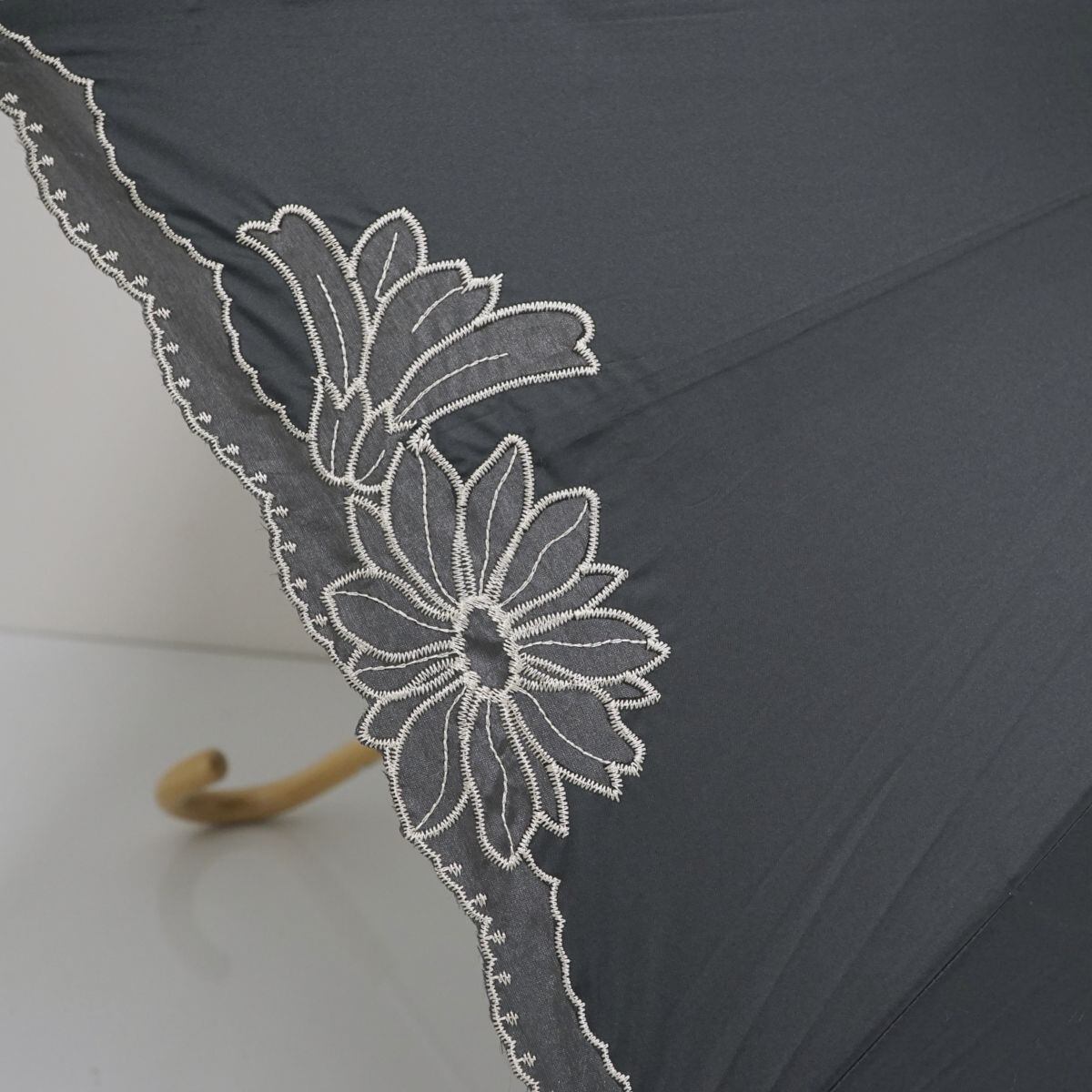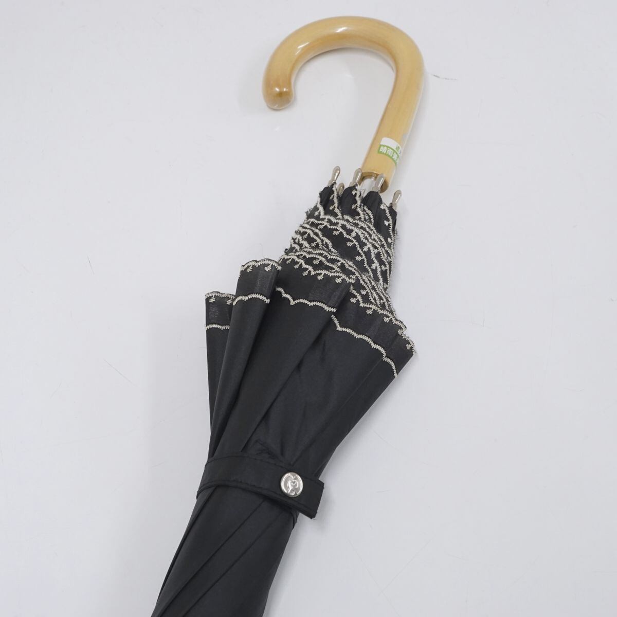 晴雨兼用日傘 mila schon ミラショーン USED美品 遮光 遮熱 フラワー 刺繍 ブラック グラス骨 UV 47cm A0839