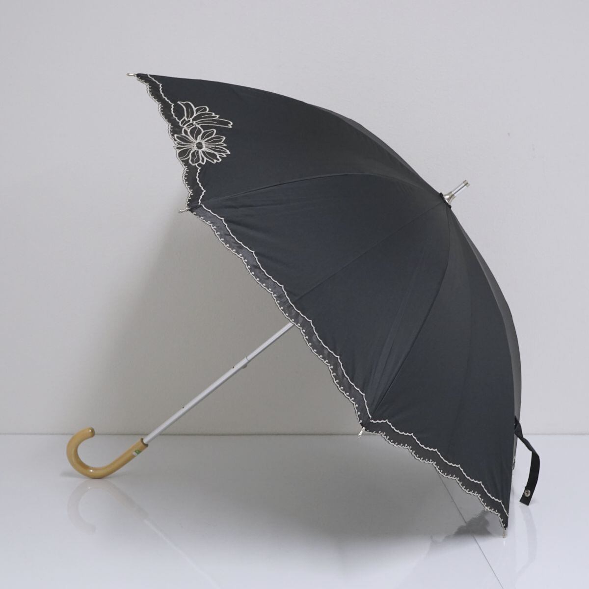 生地の縁にフラワー刺繍を施したエレガントなパラソルです。