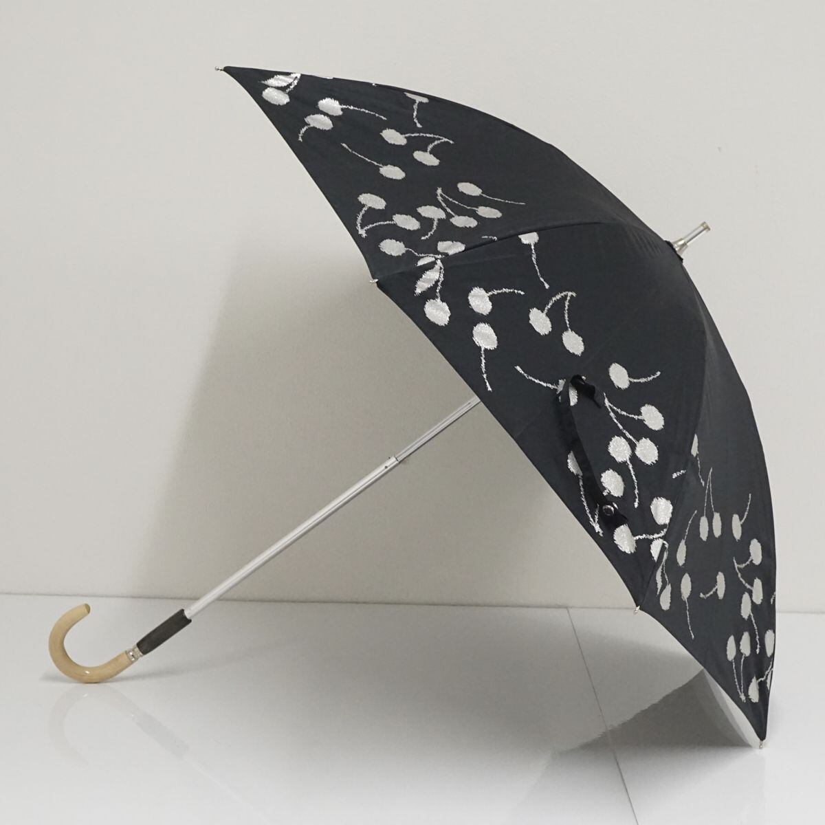晴雨兼用傘 JILL STUART ジルスチュアート USED美品 晴雨兼用 レディース ブラック チェリー UV 47cm S0859