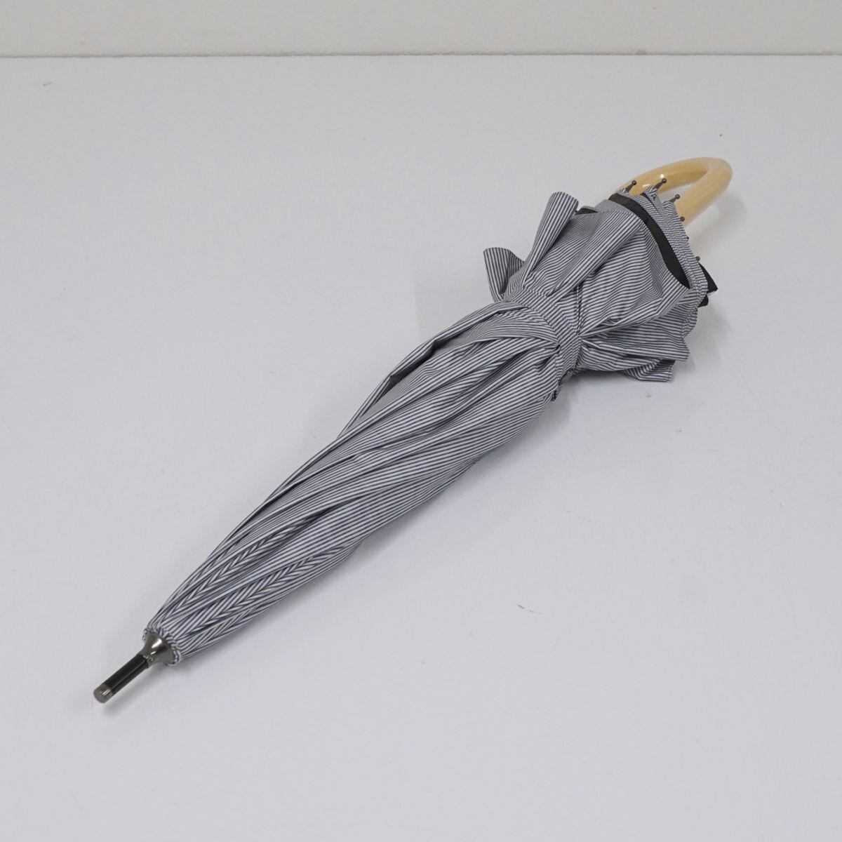 晴雨兼用日傘 SUGITA スギタ USED美品 トランスフォーム傘 広がる傘 ストライプ レース UV 45cm S0858