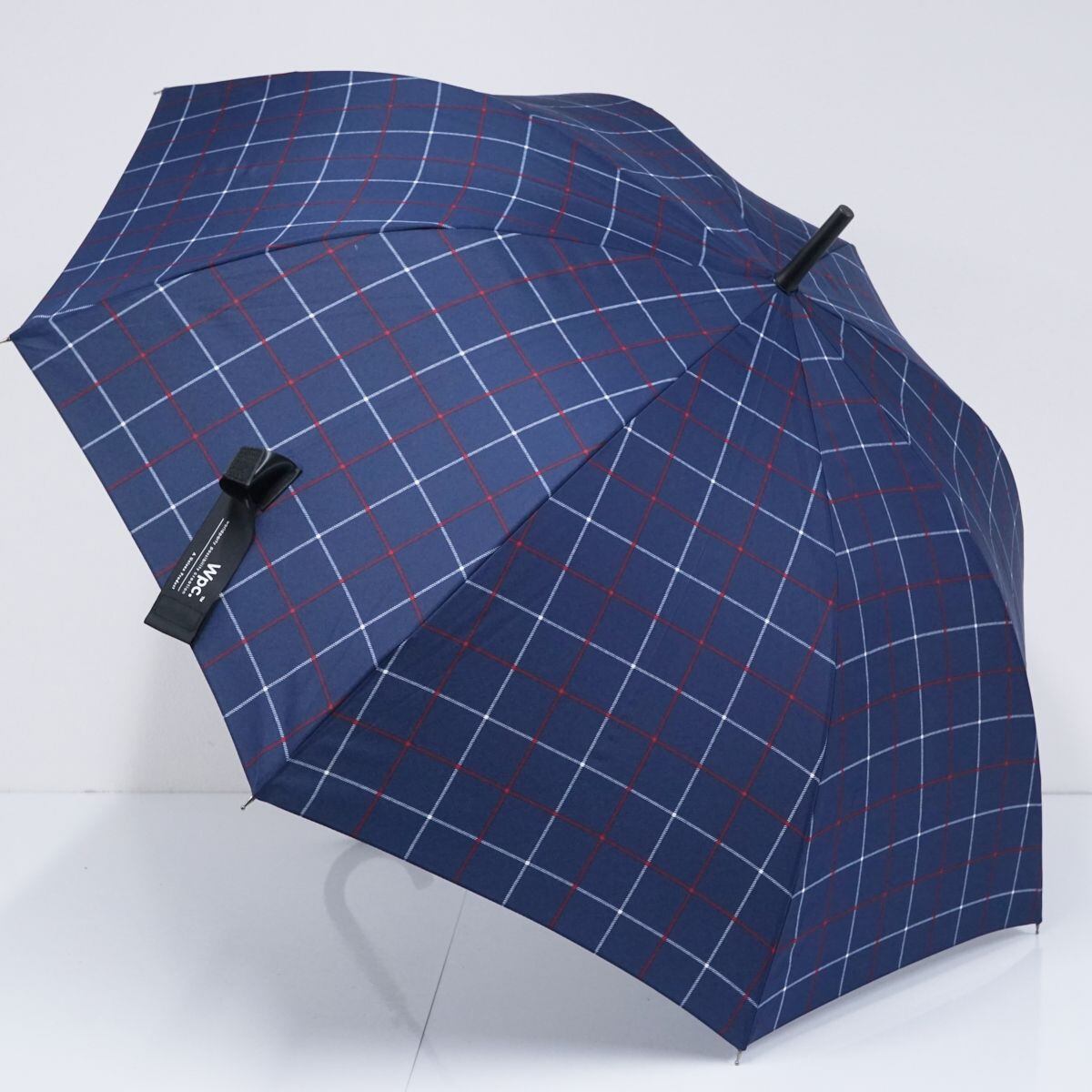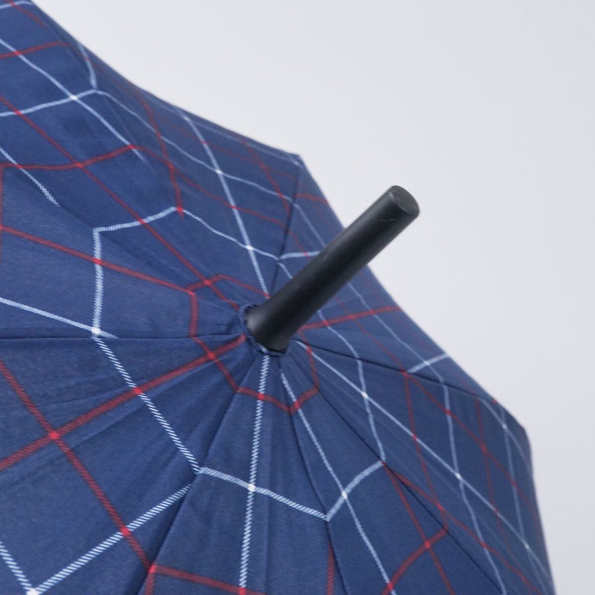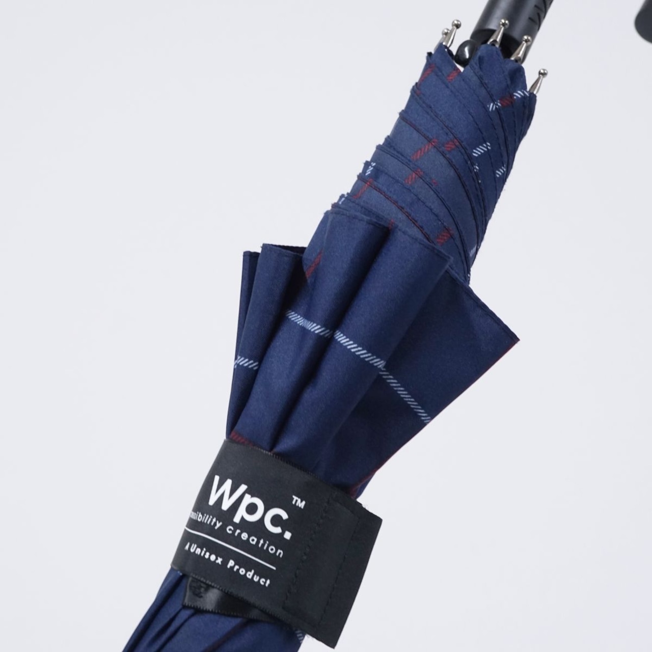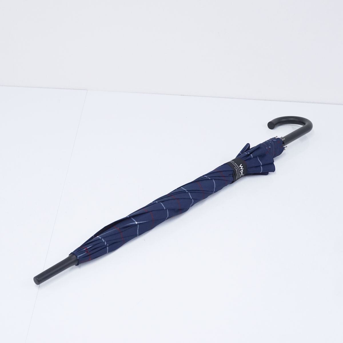 w.p.c ワールドパーティー 傘 USED美品 ネイビー チェック 格子 メンズ 晴雨兼用 黒ベルト ジャンプ 65cm BT2291