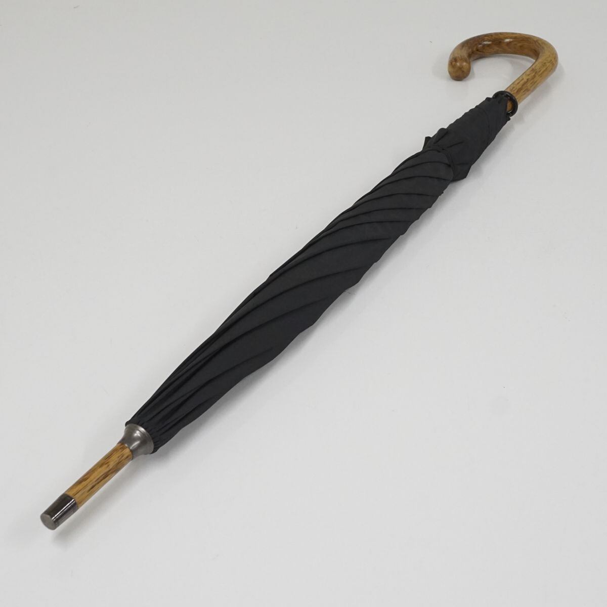 紳士傘 FOX UMBRELLA フォックスアンブレラ USED美品 傘 メンズ ヒッコリー 無地 黒 63cm S0873