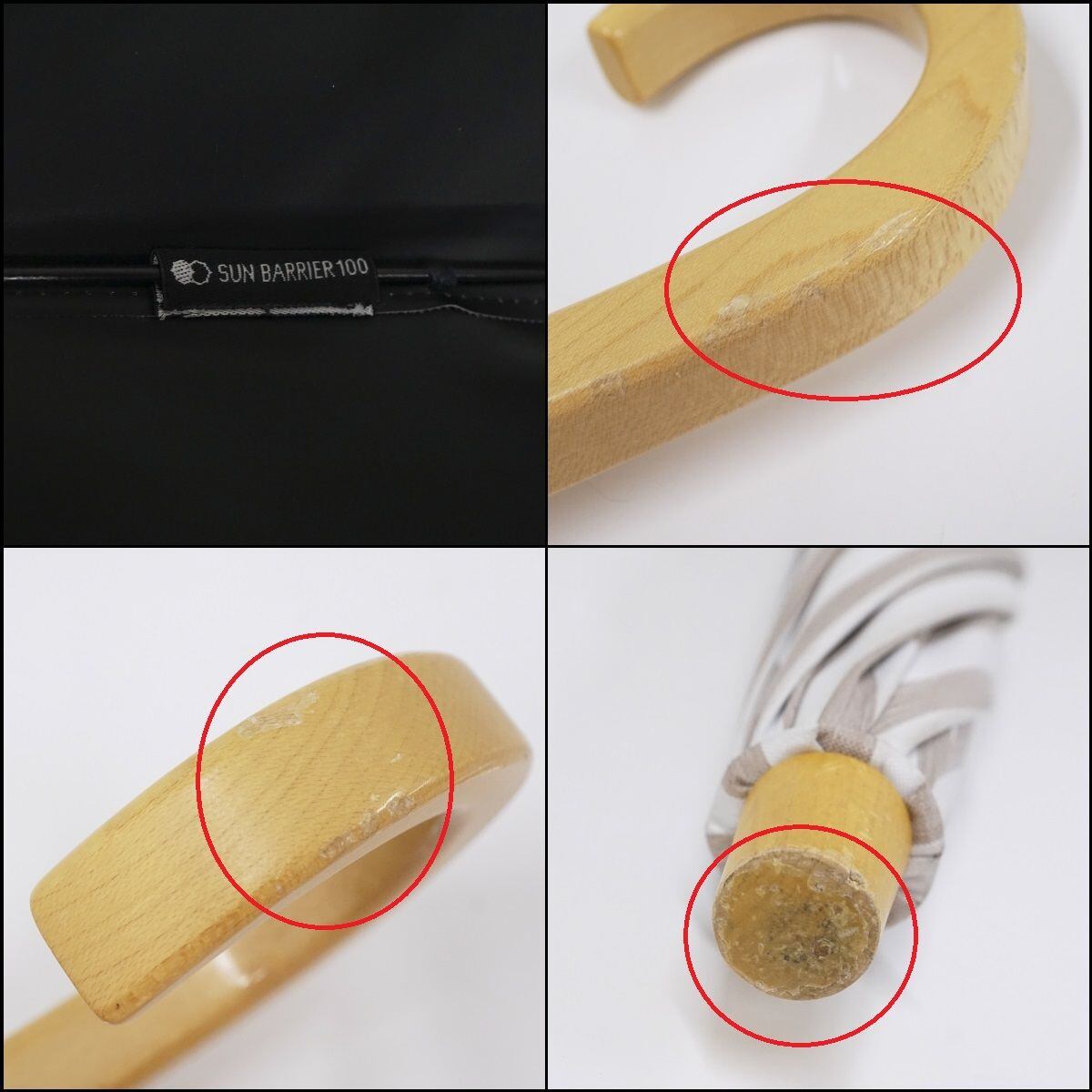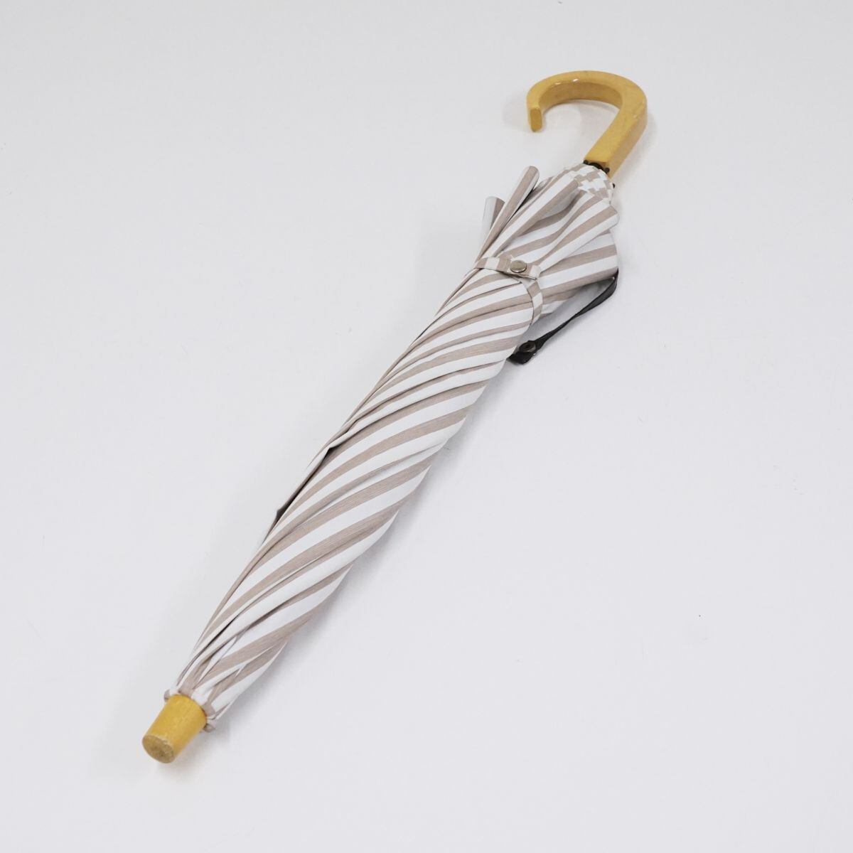 完全遮光折日傘 サンバリア100 USED美品 2段 ストライプ モカ 折りたたみ傘 UV 遮熱 50cm FS8465