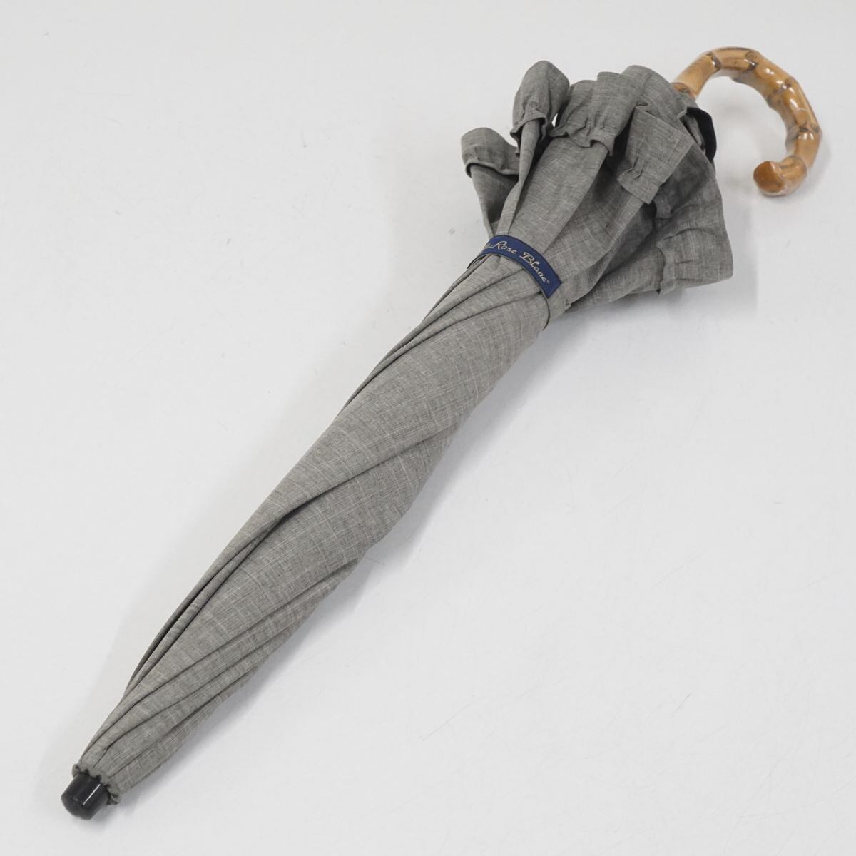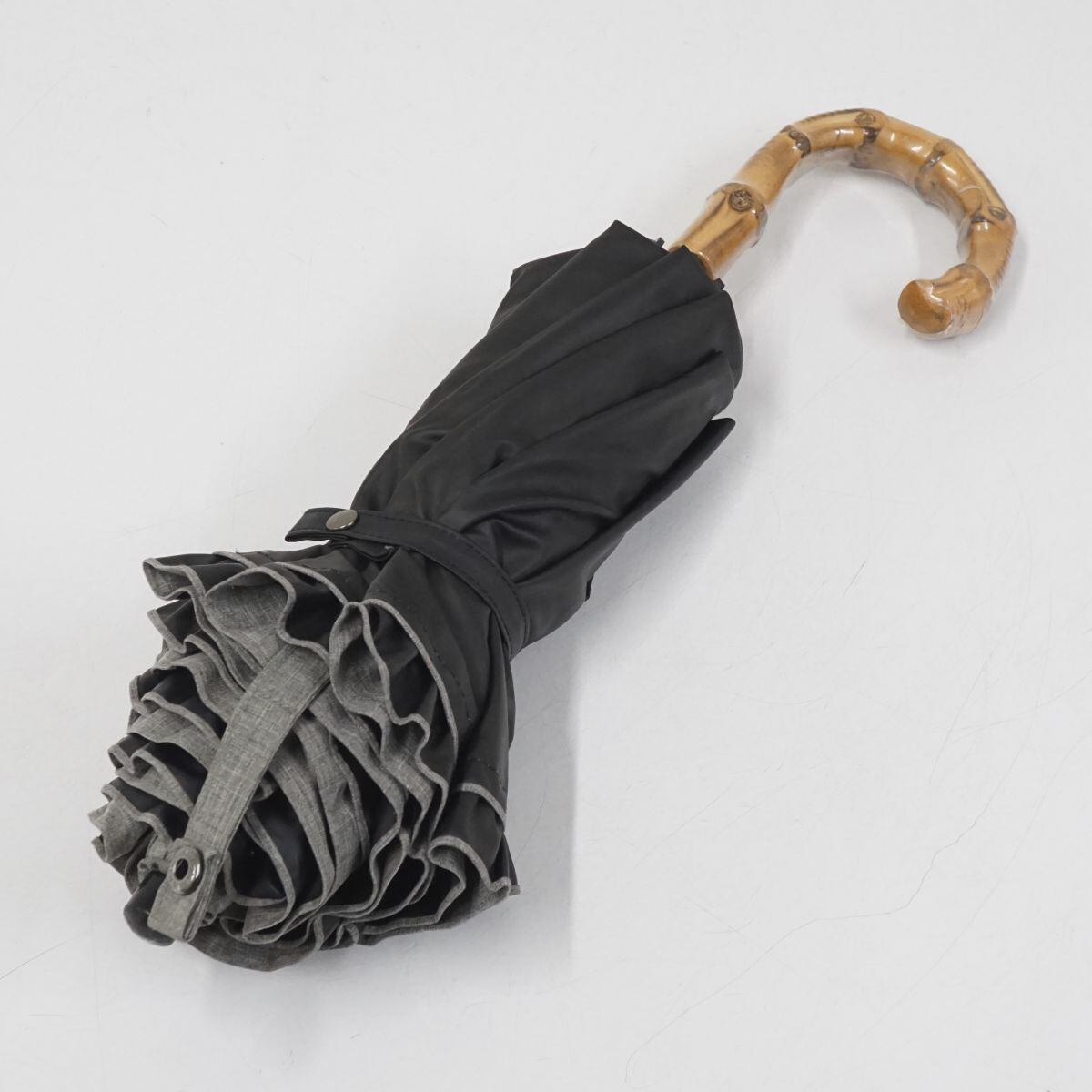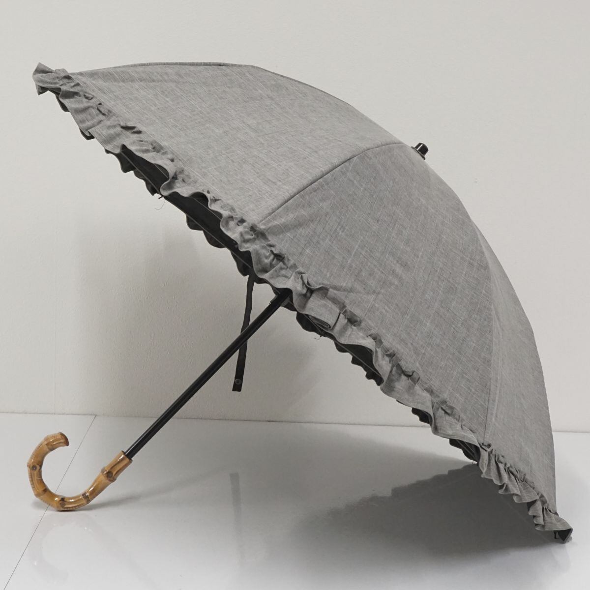 完全遮光折日傘 芦屋ロサブラン USED品 2段折 シングルフリル ダンガリーグレー 寒竹手元 UV 遮熱 折りたたみ 50cm FS8808