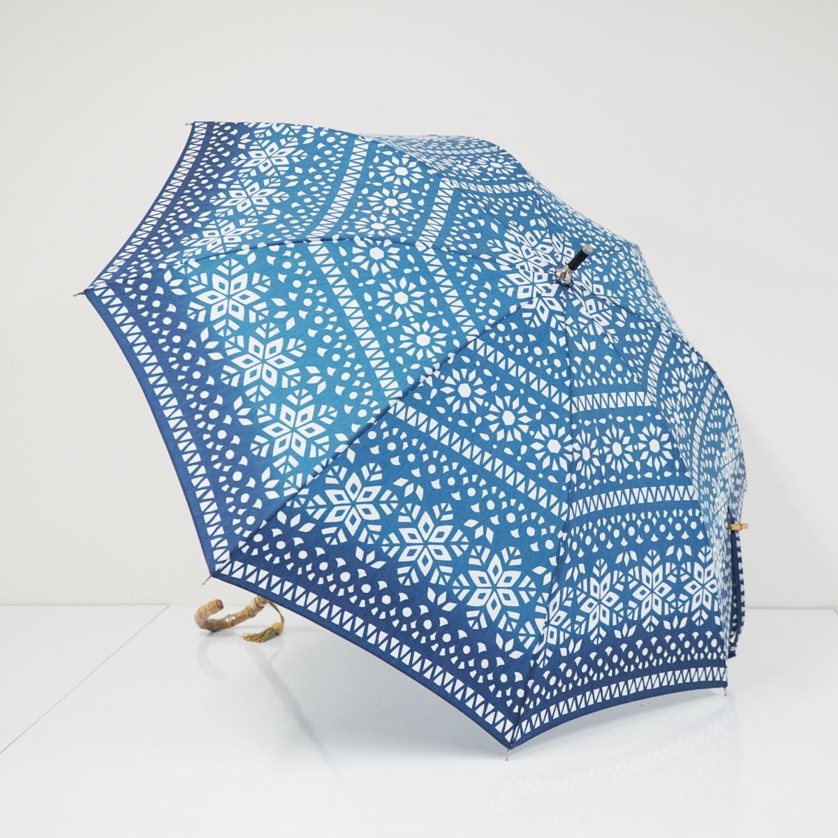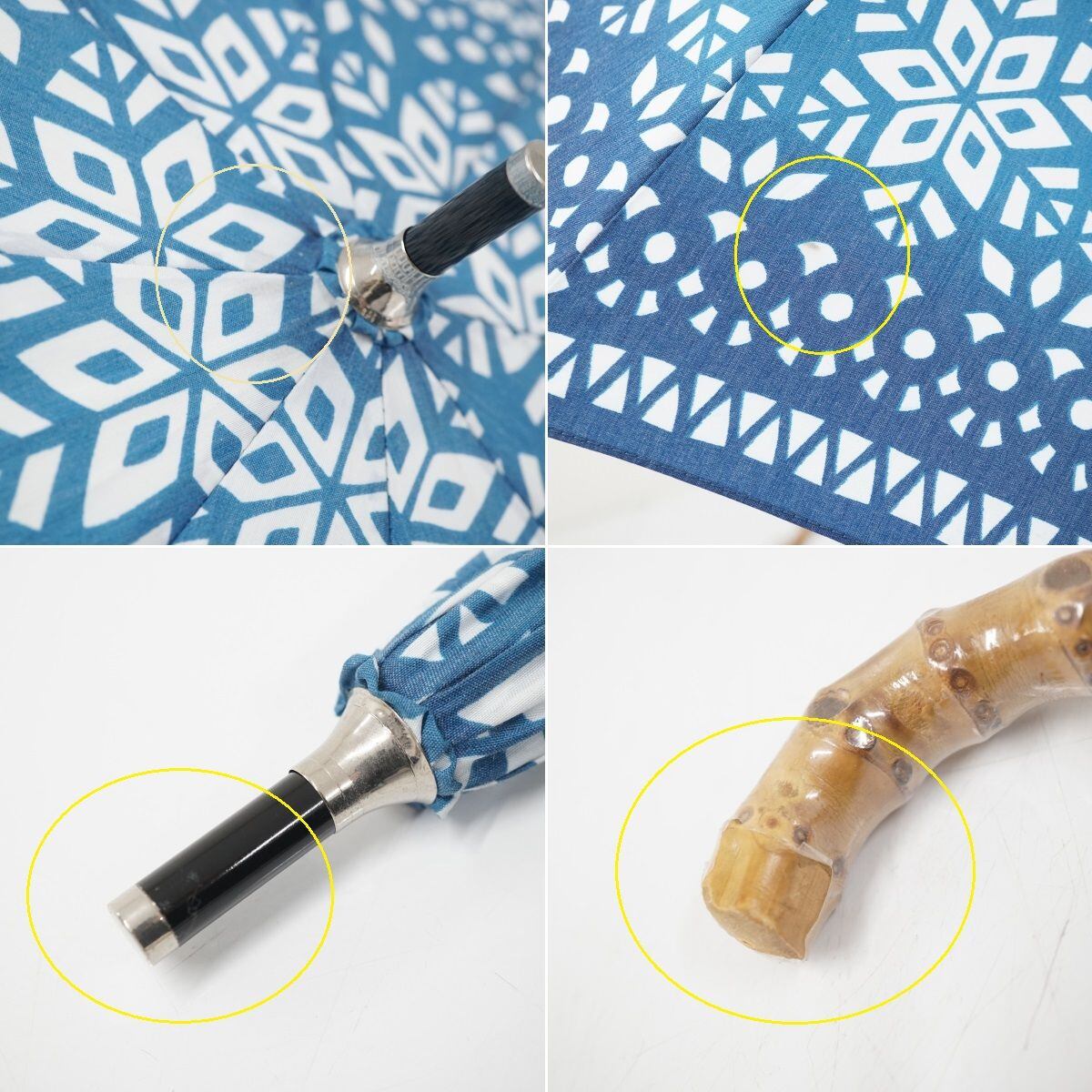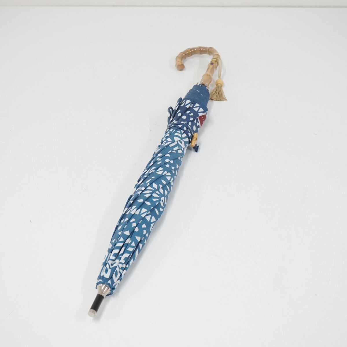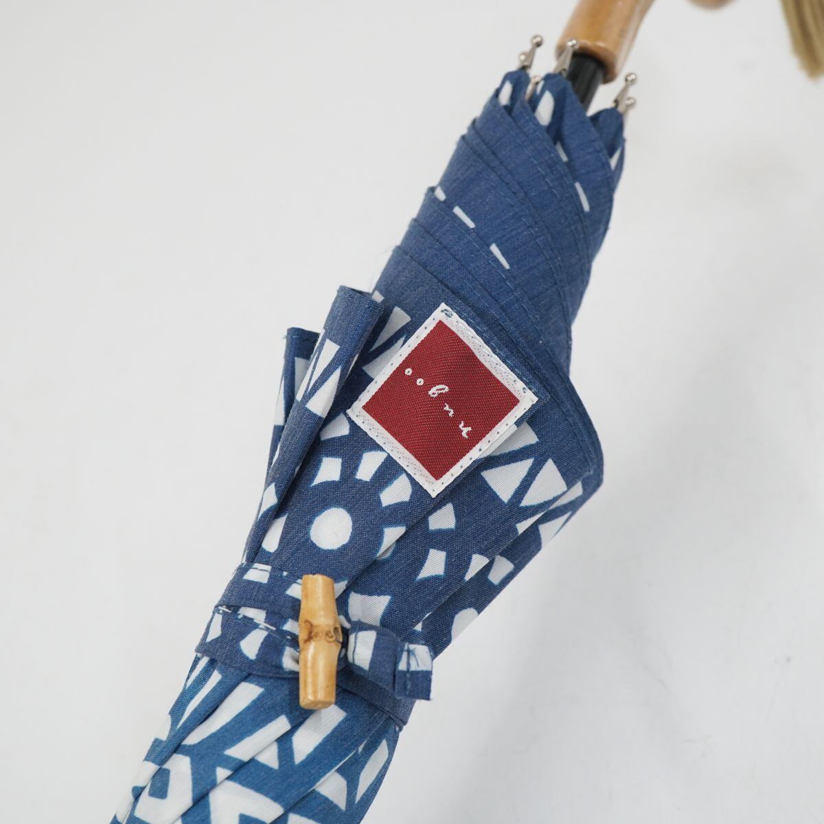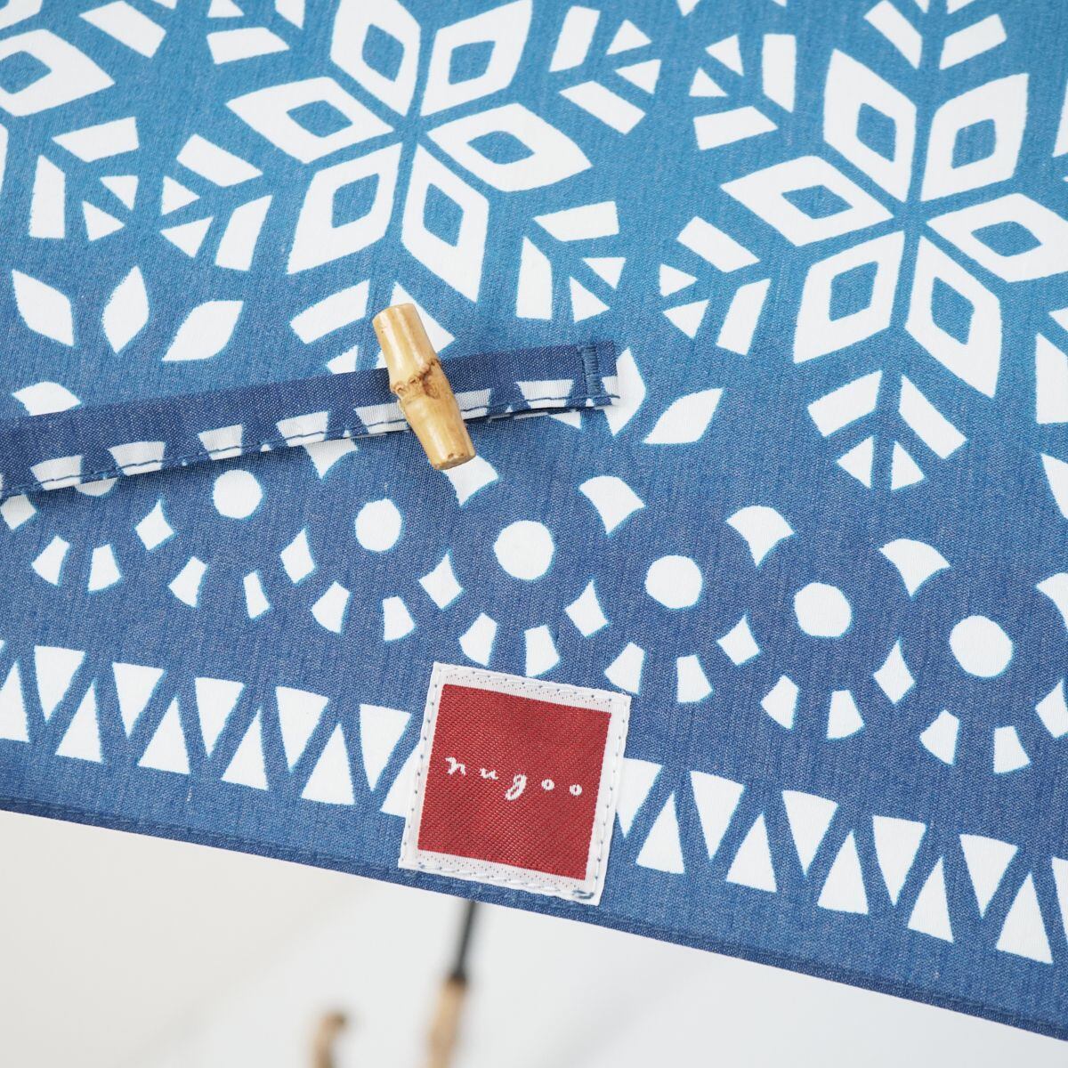 日傘 nugoo 拭う USED美品 晴雨兼用 雪花模様 寒竹手元 和風レトロ UV バンブー 50cm A0882