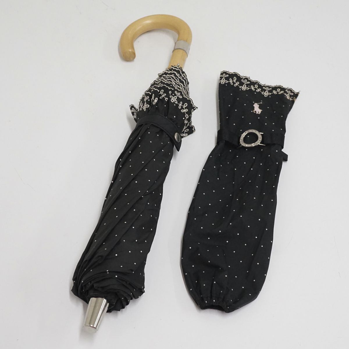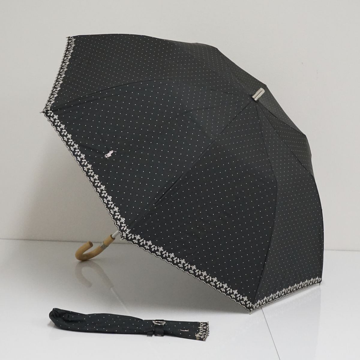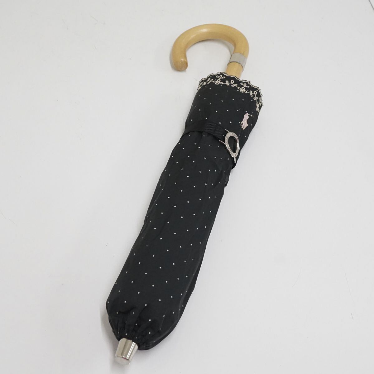 折りたたみ日傘 POLO RALPH LAUREN ポロラルフローレン USED美品 晴雨兼用 ドット ブラック 遮光 UV 50cm FA8436