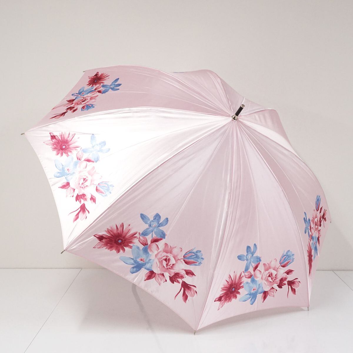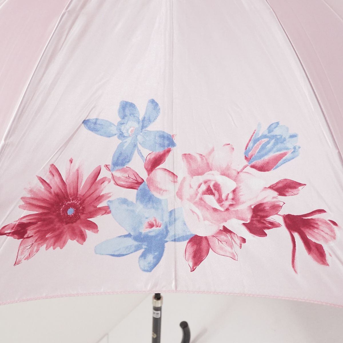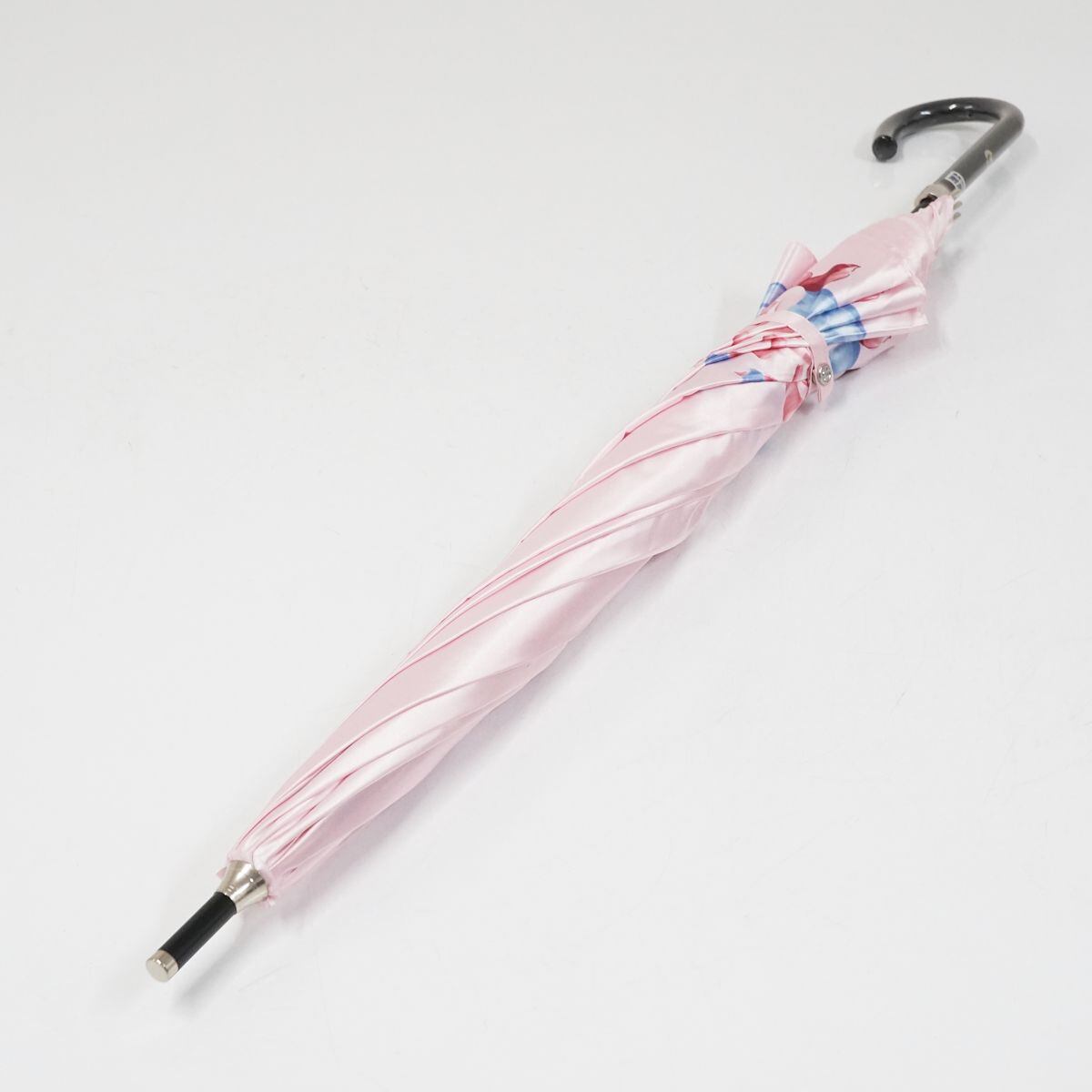 耐風傘 mila schon ミラショーン USED美品 フラワープリント 花柄 ジャンプ ピンク グラス骨 ネイビー 風に強い ブランド 60cm A0806