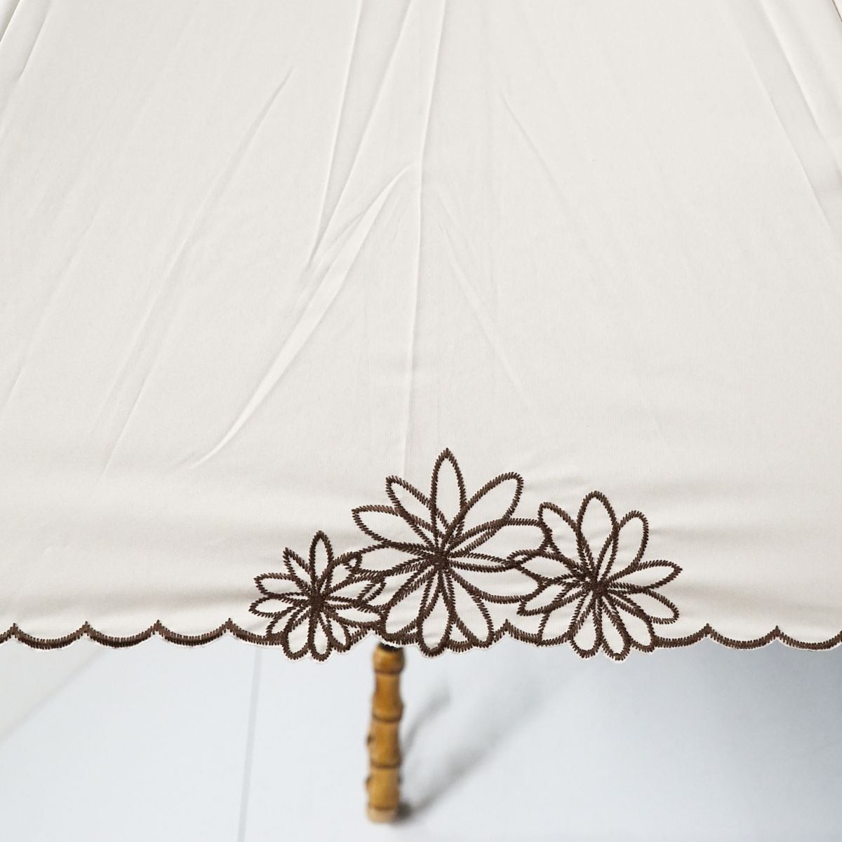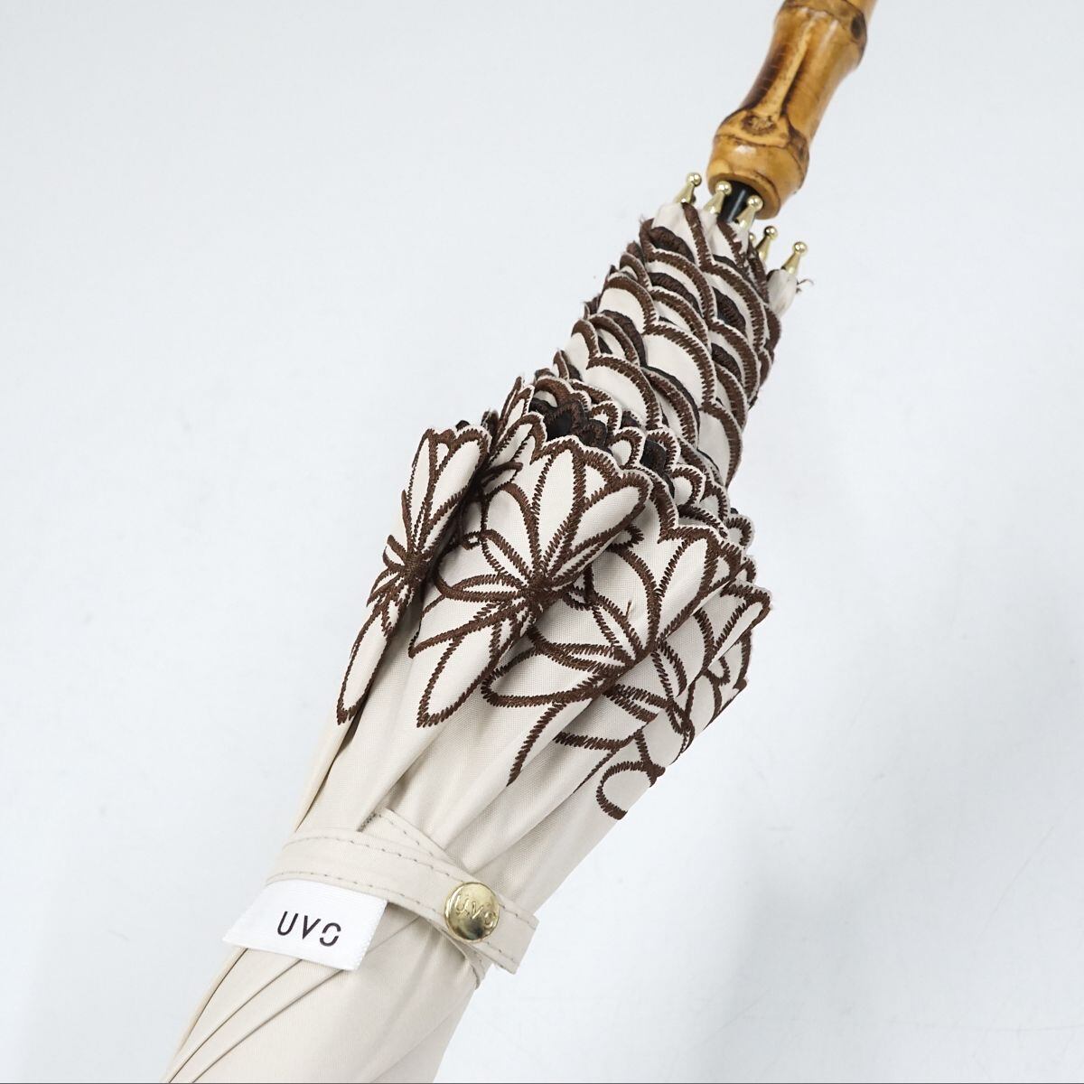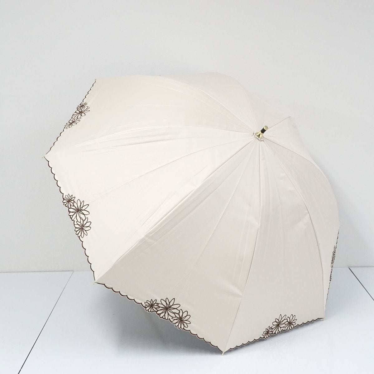 完全遮光日傘 UVO Wpc. ウーボ USED品 刺繍フラワー 8本骨 UV 遮光 遮熱 最強の日傘 大きめ シンプル 軽量 ベージュ 55cm A1240