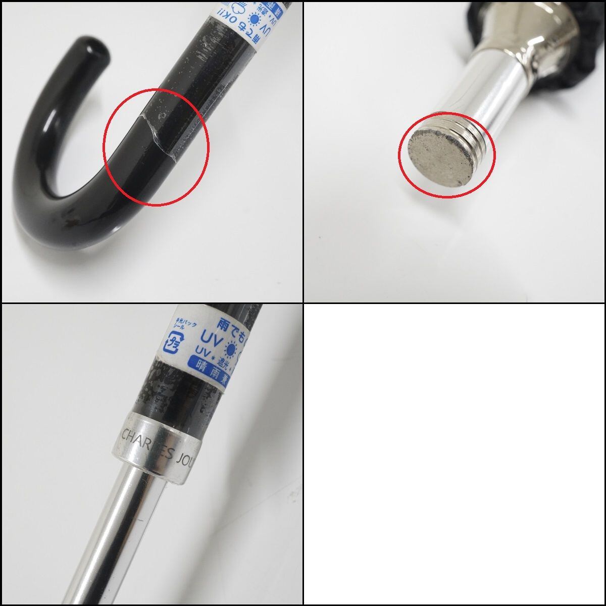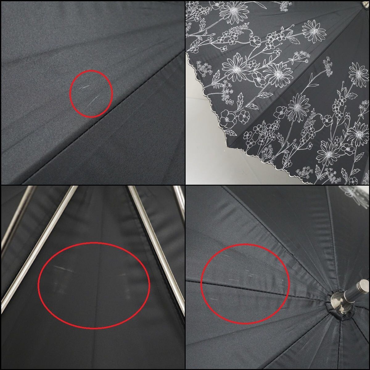 晴雨兼用日傘 CHARLES JOURDAN USED美品 シャルルジョルダン ブラック 花柄 UV 47cm A0919