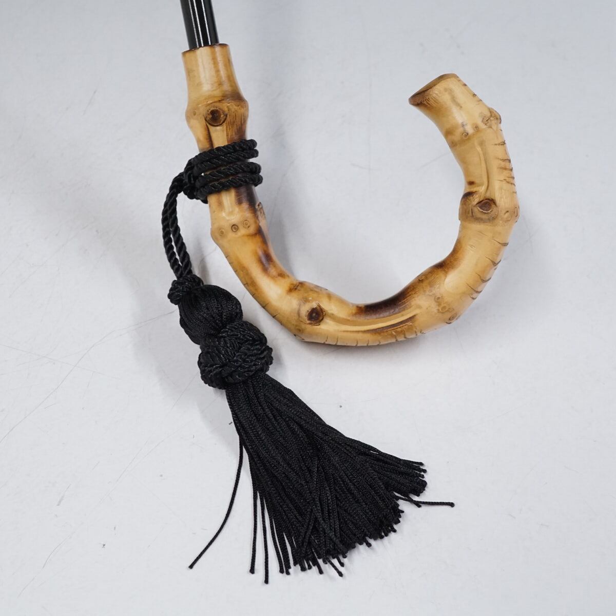シンプルな無地の生地と、バンブーハンドルがおしゃれなデザインです。