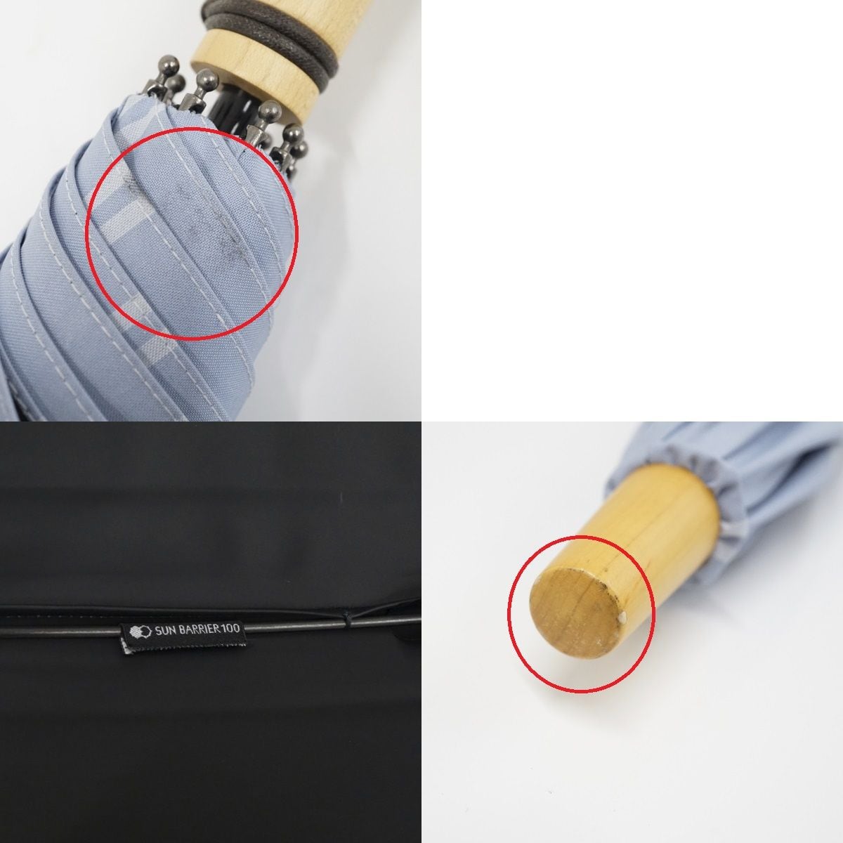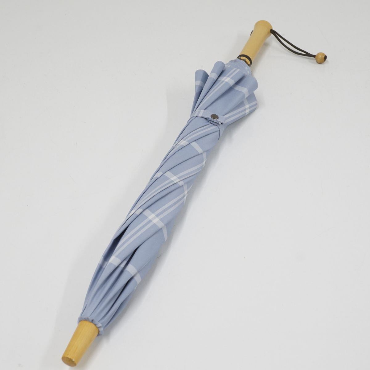 日傘 サンバリア100 完全遮光日傘 USED美品 Sサイズ チェック ブルー UV 遮光 遮熱 47cm S0915