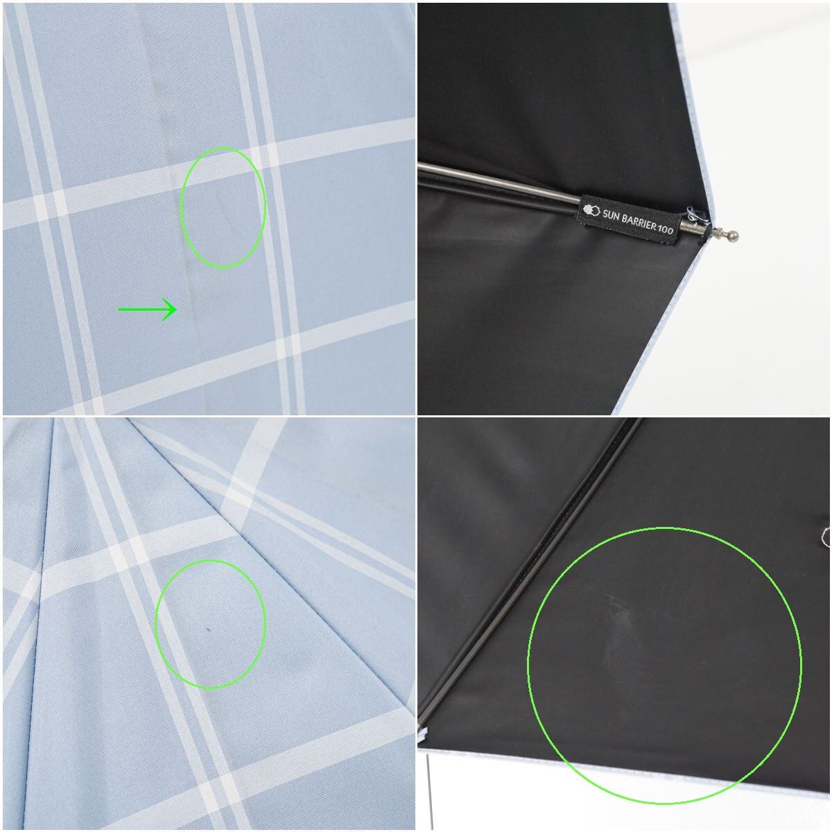 完全遮光日傘 サンバリア100 USED品 Sサイズ チェック ブルー ストレート手元 UVカット 遮熱 カーボンフレーム SUN BARRIER 100 47cm S3586