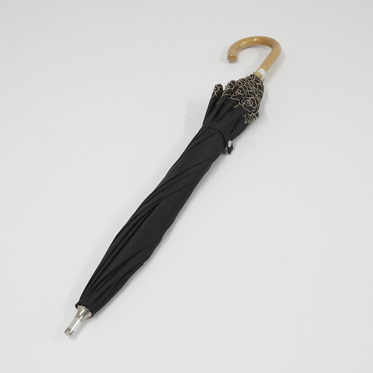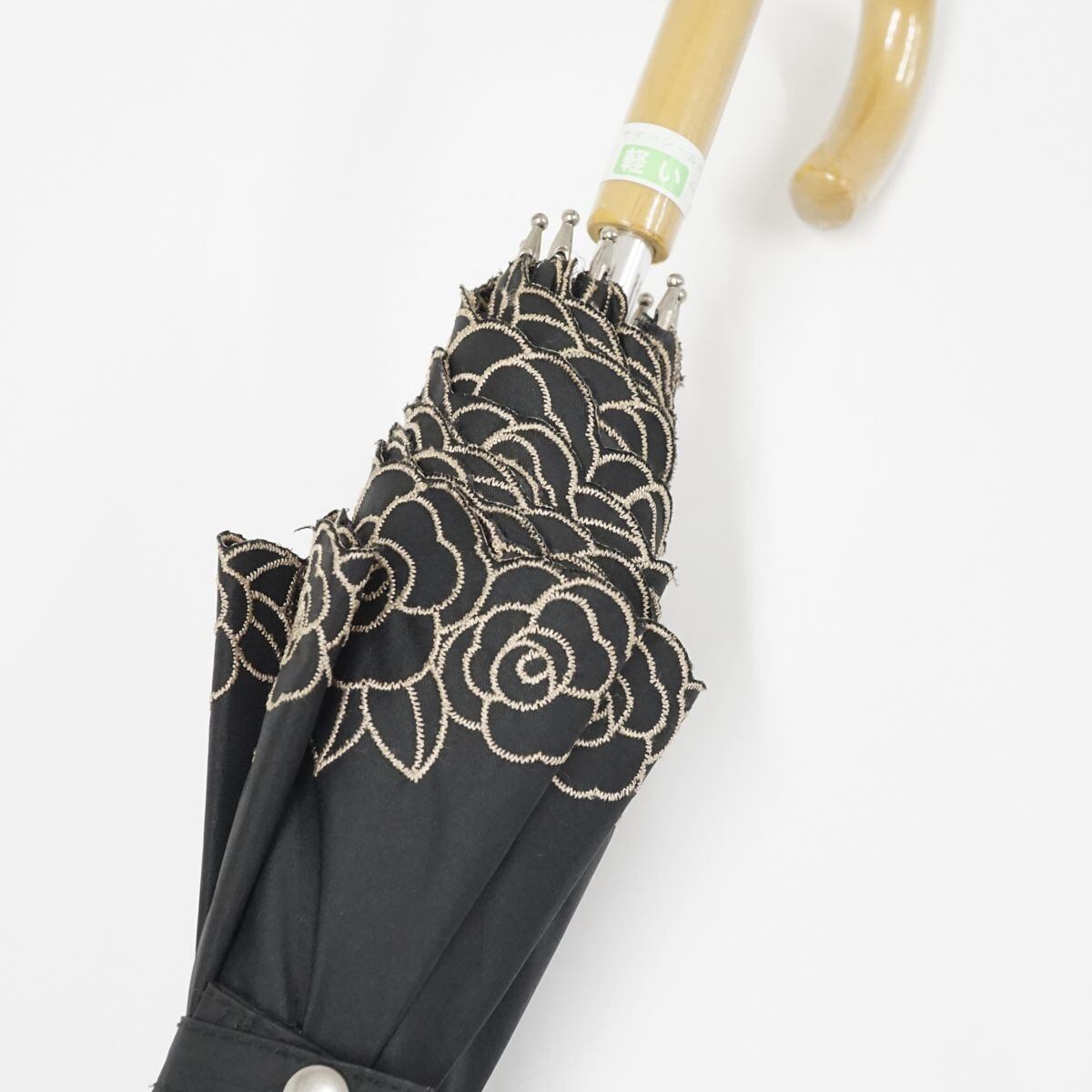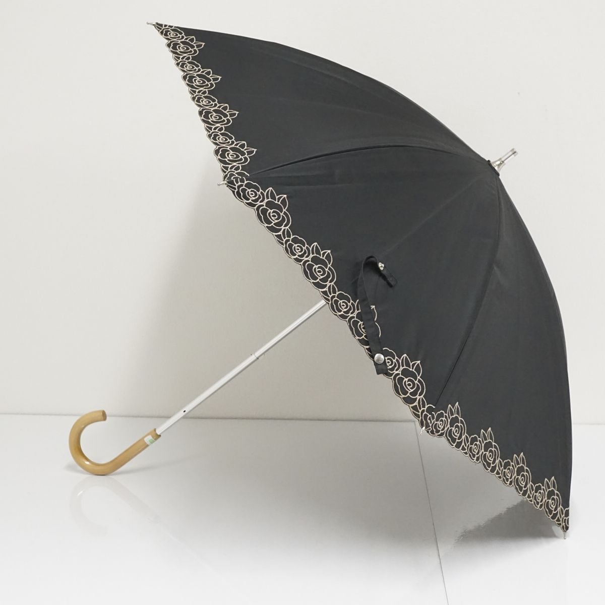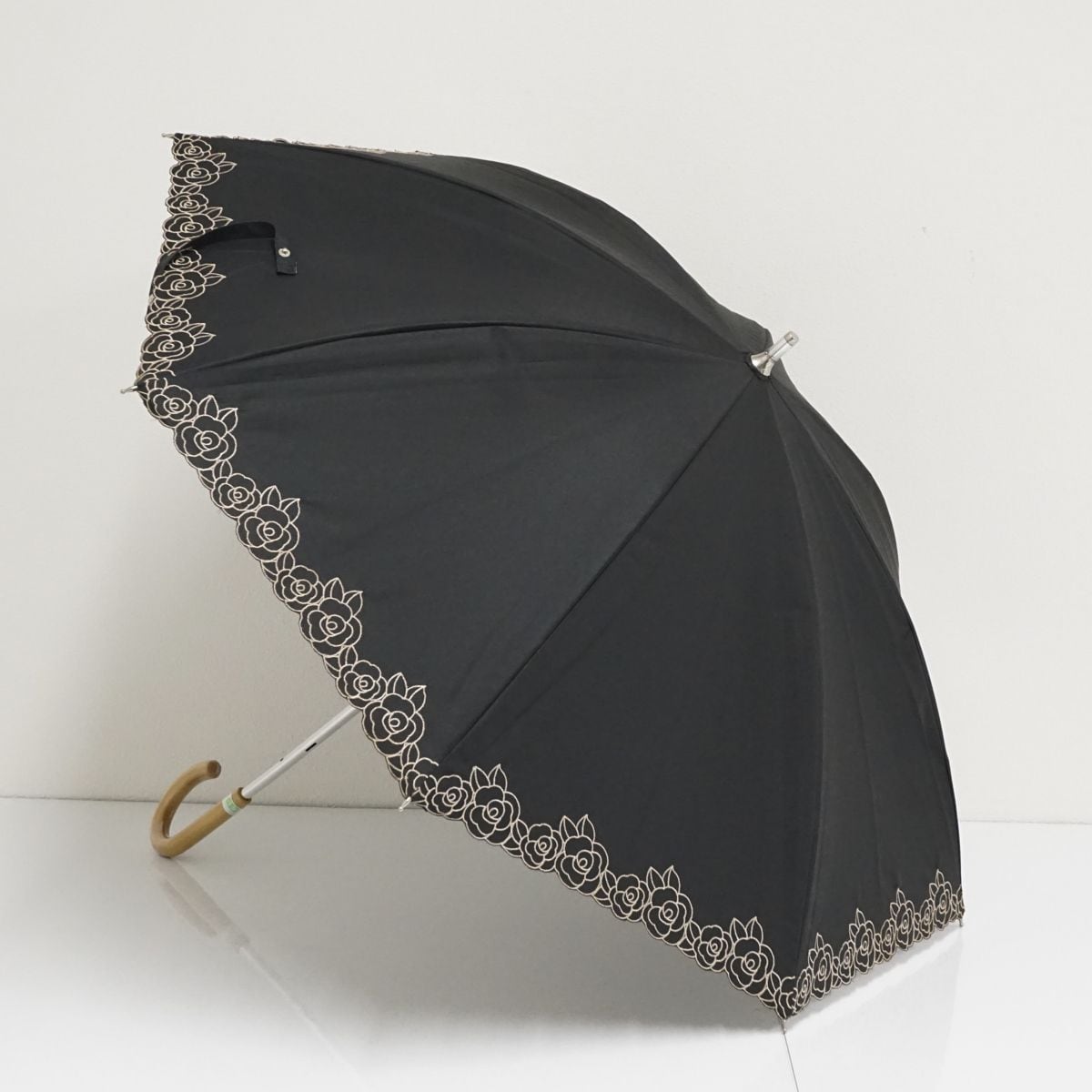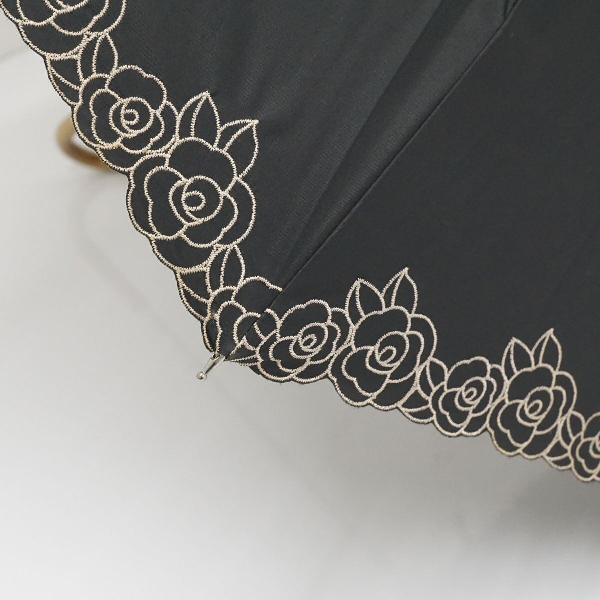 晴雨兼用日傘 AURORA オーロラ(株) USED美品 東レサマーシールド ブラック 花柄刺繍 遮光 遮熱 UV 47cm A0926