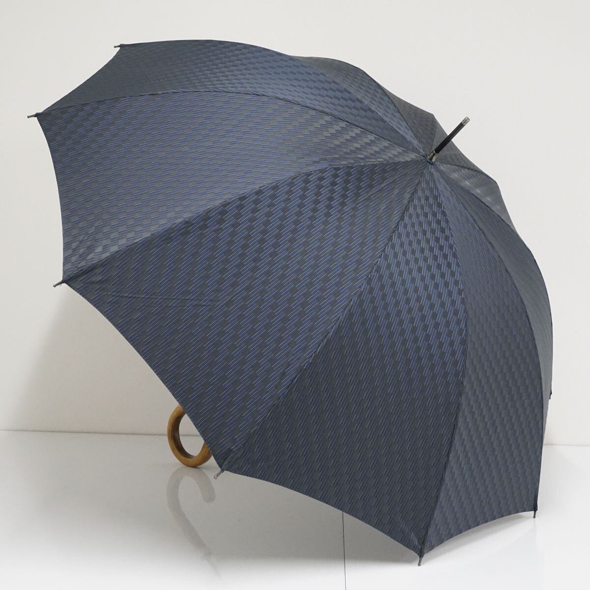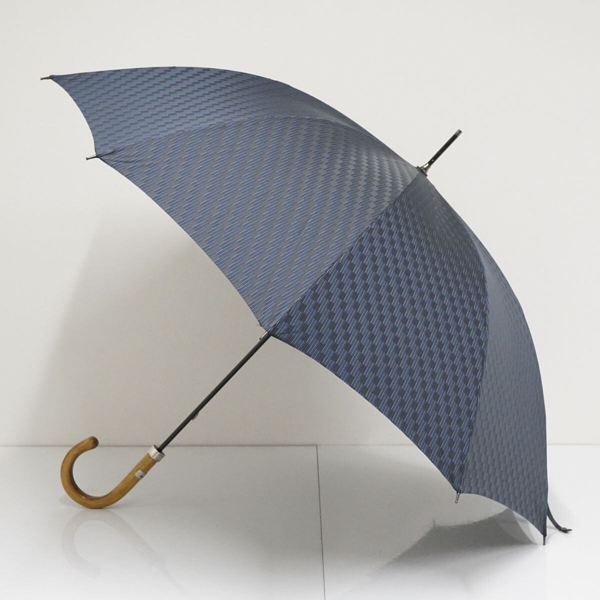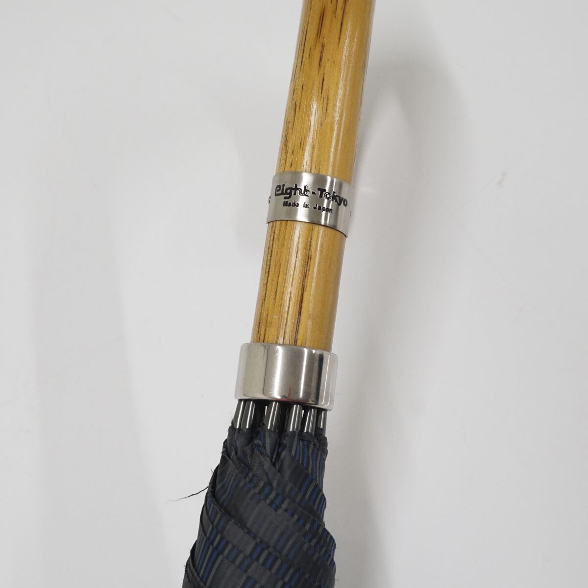 eight tokyo エイト トウキョウ 紳士傘 USED美品 ジャガード チェック グレー ブルー カーボン骨 軽量 高級 日本製 60cm S0932
