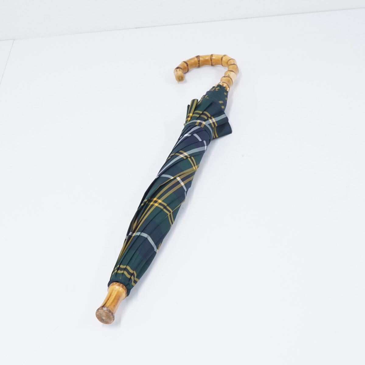 晴雨兼用傘 Traditional Weatherwear トラディショナルウェザーウェア USED美品 チェック グリーン バンブー 高級 傘 UV 52cm S2539