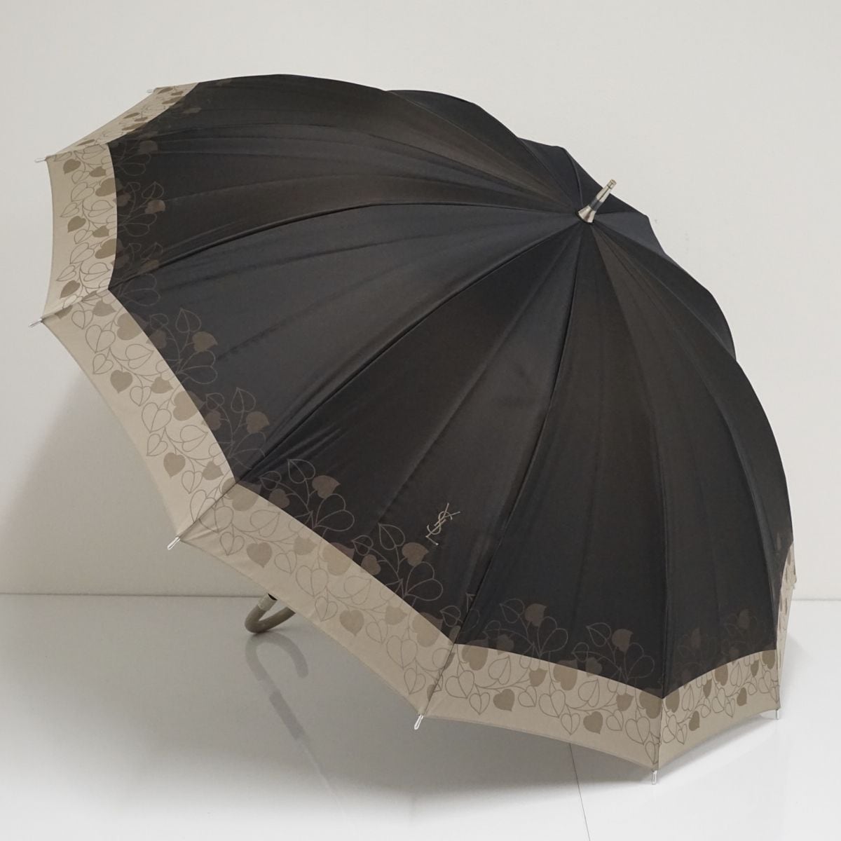 YSL イヴサンローラン 高級傘 USED美品 ロゴ刺繍 エレガント グラス骨 ブランド 多間 58cm S0946