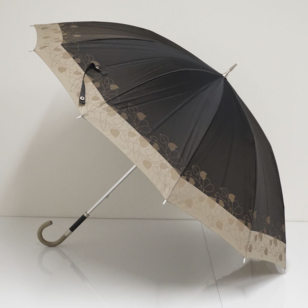 角度によって見え方が変わる生地をベースに、縁にはハート型の葉っぱのデザインをあしらったおしゃれな傘です。