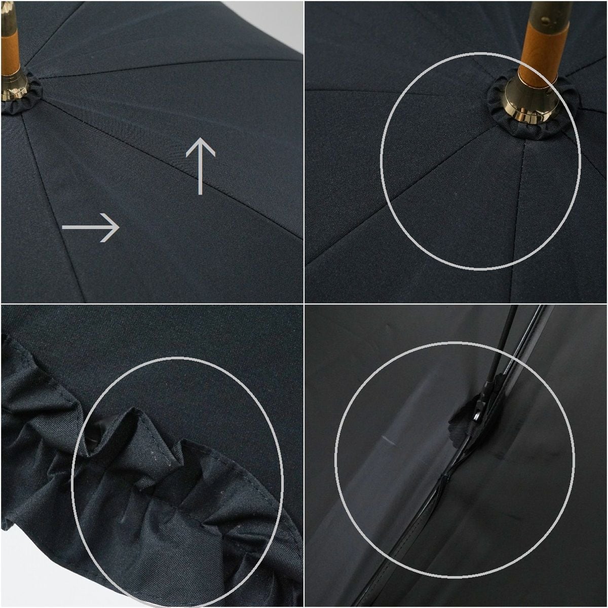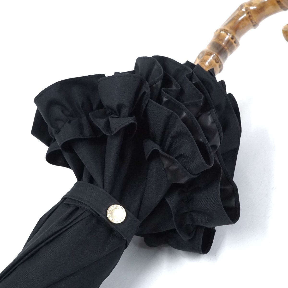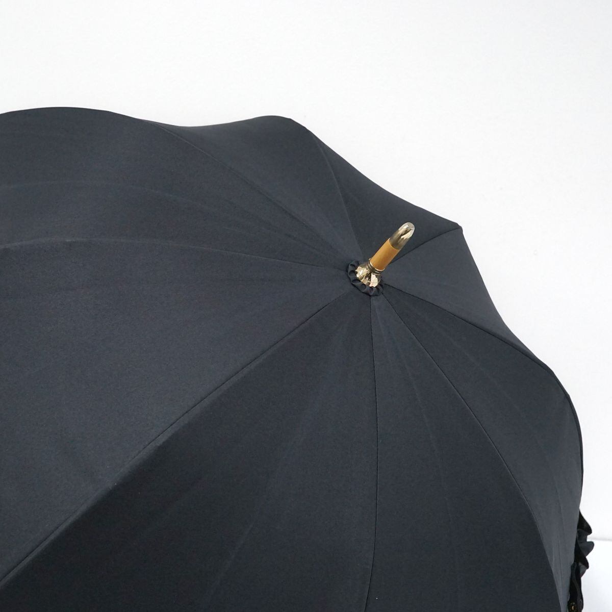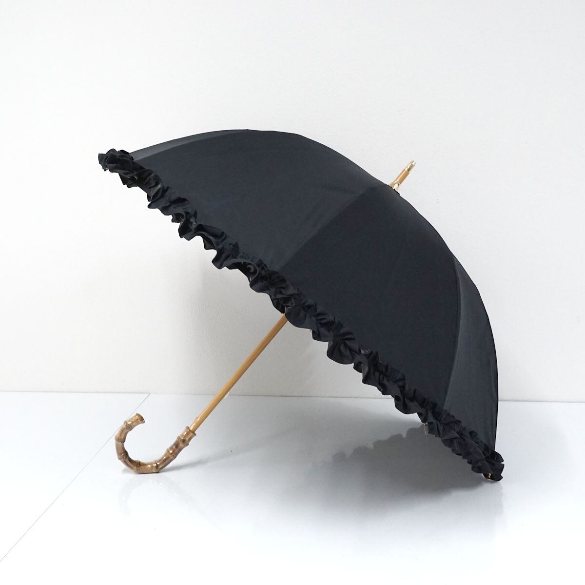 完全遮光日傘 untule アントゥーレ USED美品 Sサイズ ブラック フリル 遮光率100% 遮熱 UV グラス骨 寒竹手元 50cm S0921
