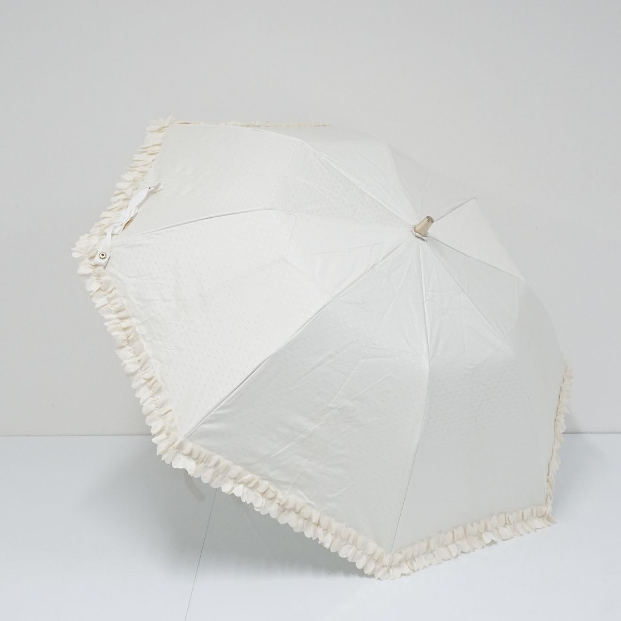 折りたたみ日傘 LANVIN en Bleu ランバンオンブルー USED品 晴雨兼用 折日傘 フリル プチリボン 遮光 遮熱 UV ホワイト 50cm FA8475