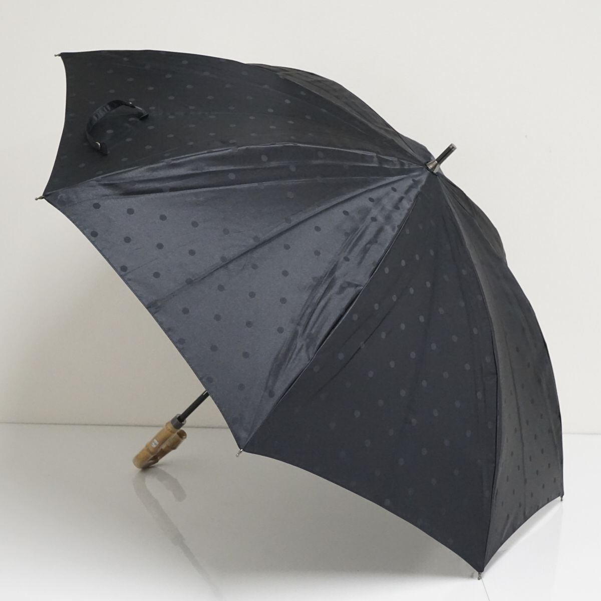 晴雨兼用日傘(株)オカモト USED美品 ブラック ドット 遮光 遮熱 UV 55cm A0966