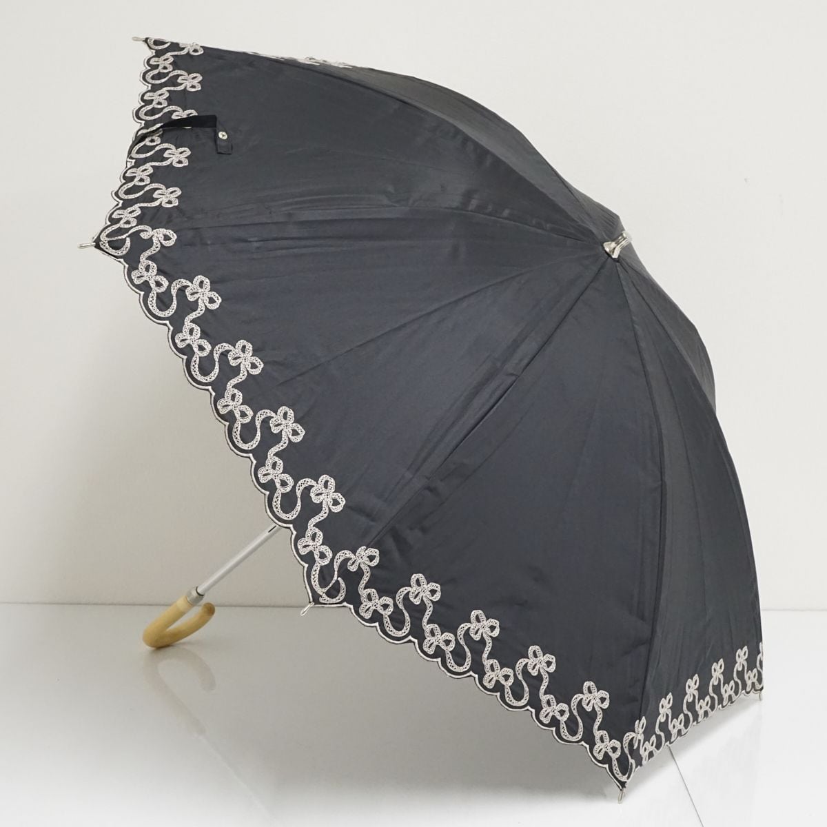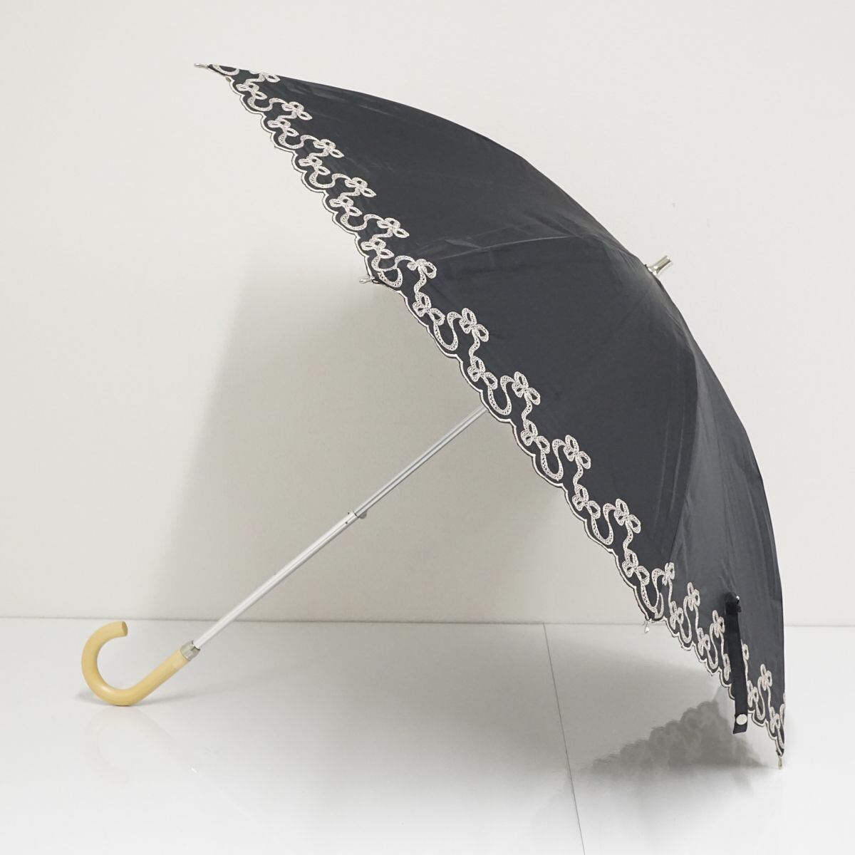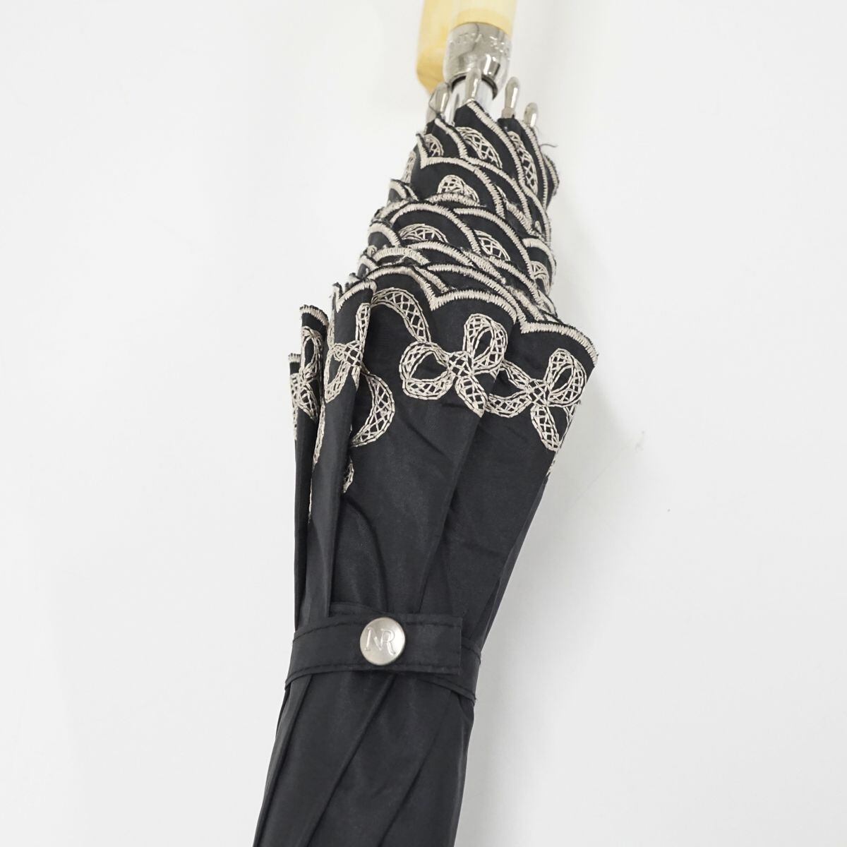 日傘 NINA RICCI ニナリッチ USED美品 晴雨兼用 刺繍 ブラック 黒 UV 遮光 遮熱 グラス骨 50cm A0967