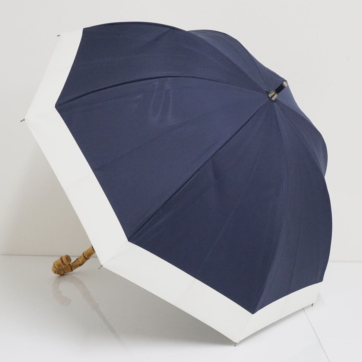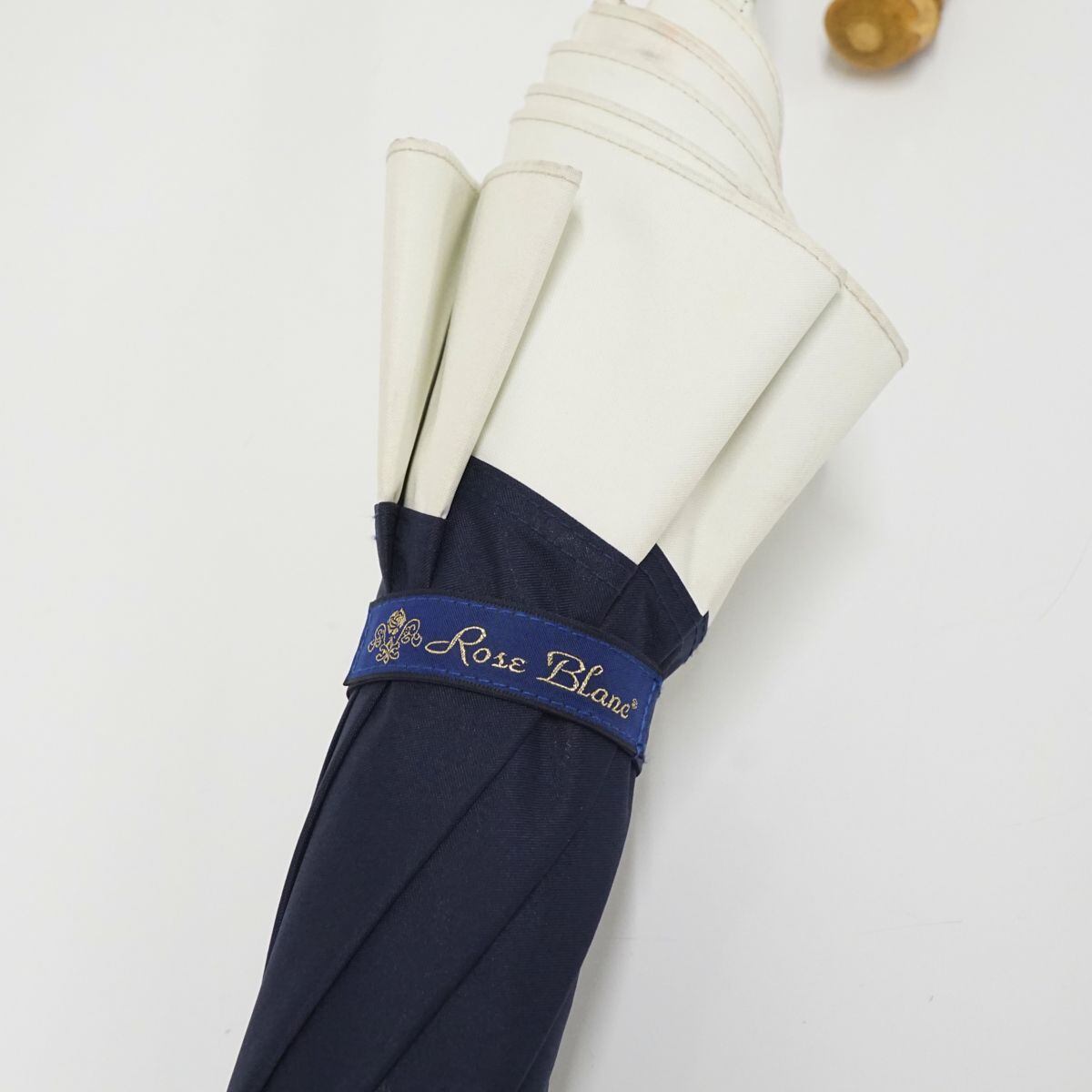 芦屋ロサブラン 完全遮光日傘 USED品 ショートサイズ コンビ ネイビーXアイボリー UV 遮光 遮熱 50cm S0983