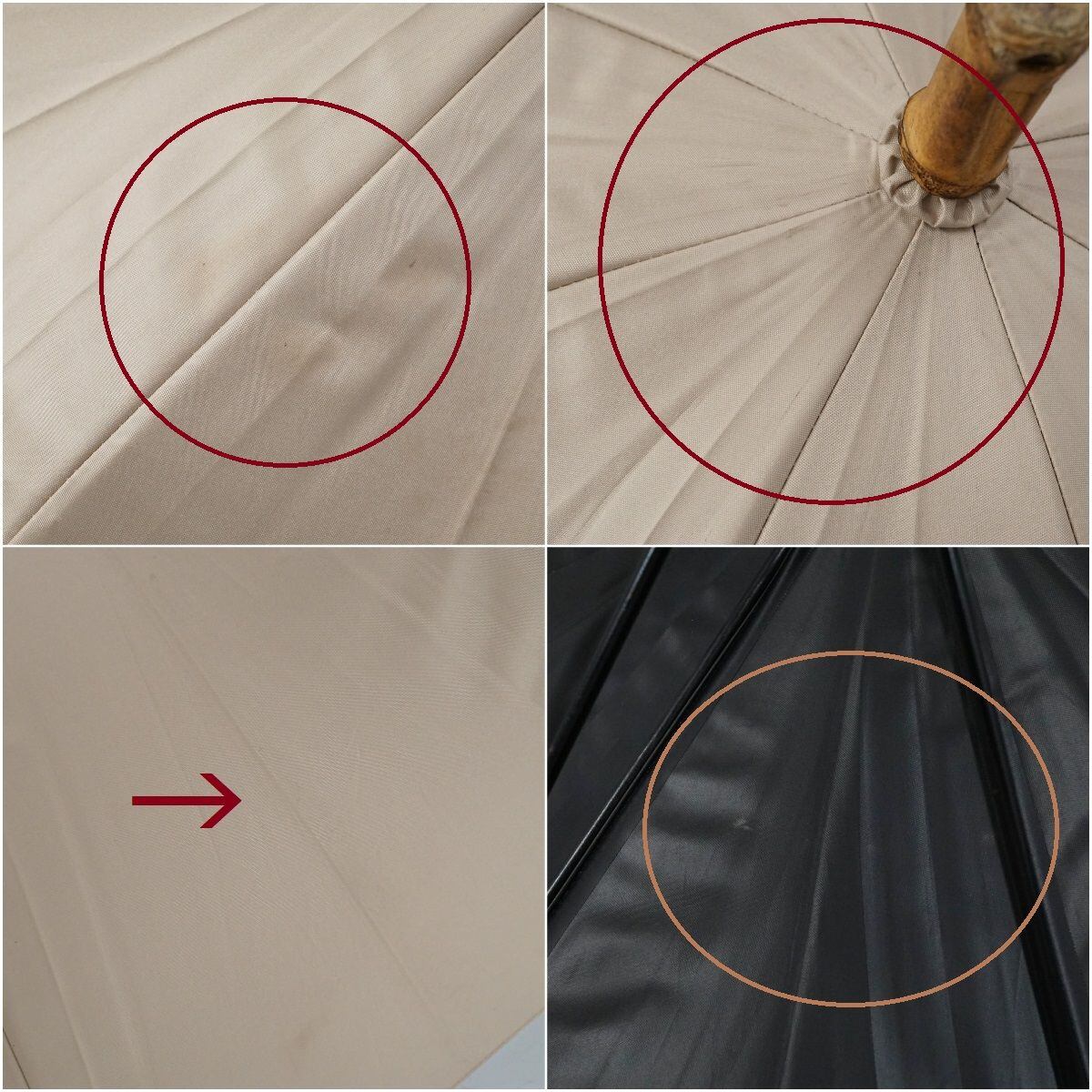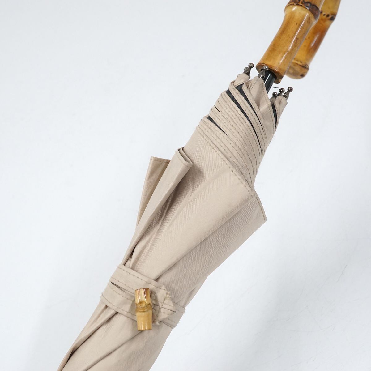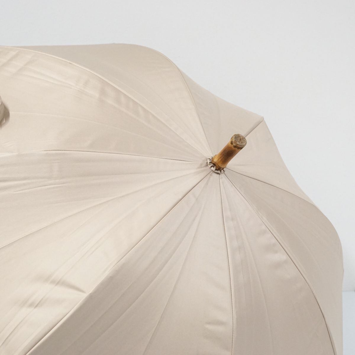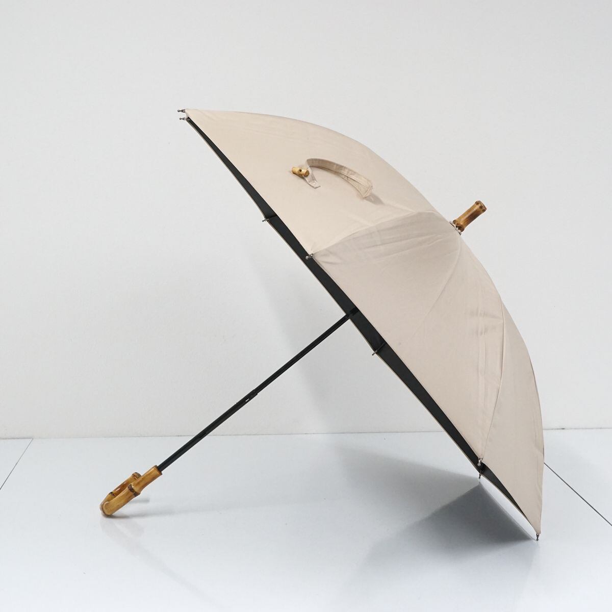 晴雨兼用日傘 utatane ウタタネ USED品 一級遮光 ベージュ 無地 シンプル バンブーハンドル グラス骨 47cm A1237