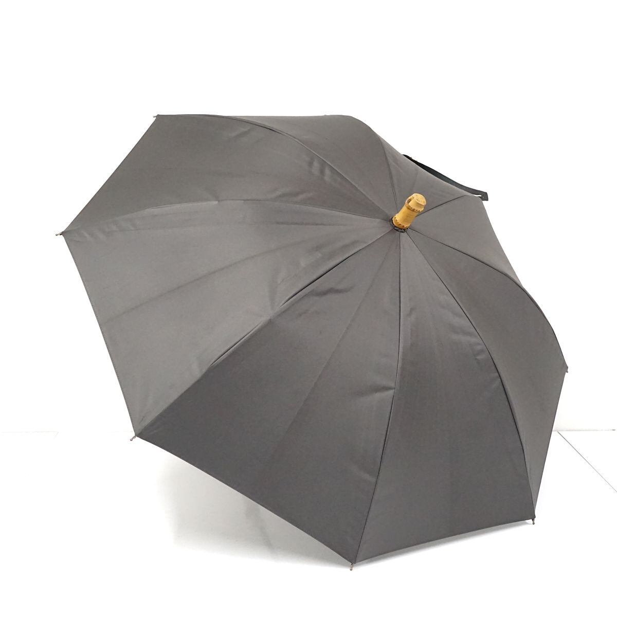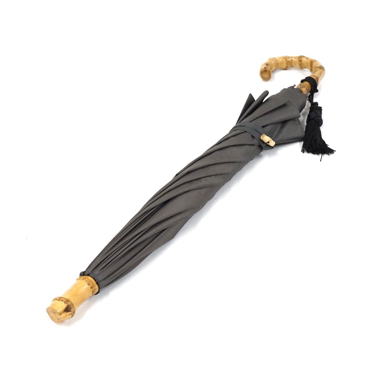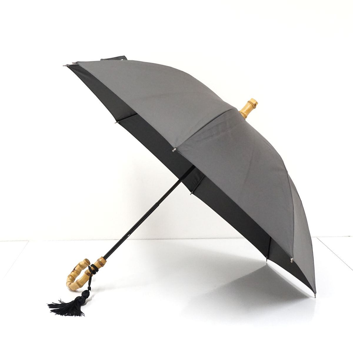 晴雨兼用日傘 utatane うたたね USED品 一級遮光 スレートグレー 無地 シンプル バンブーハンドル タッセル グラス骨 UV 47cm A0956
