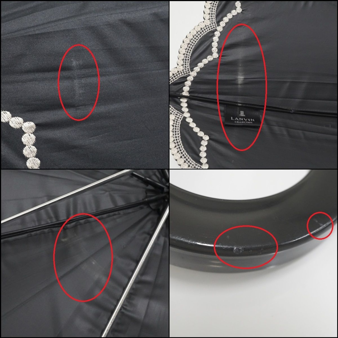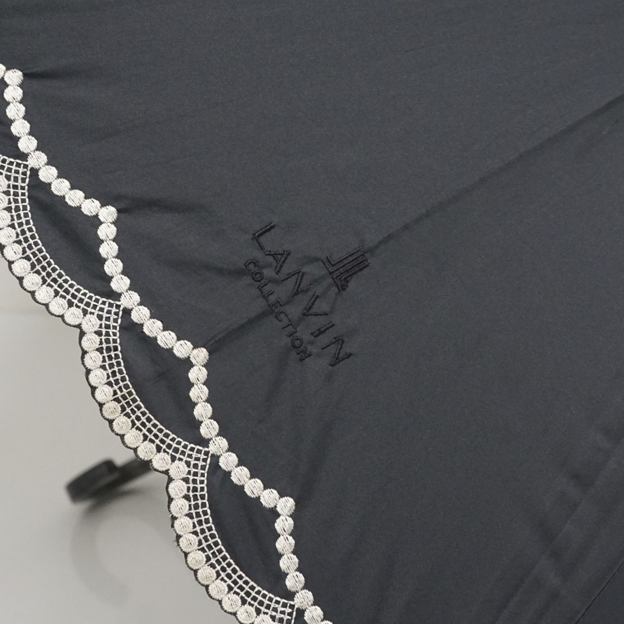 LANVIN COLLECTION ランバンコレクション 晴雨兼用日傘 USED美品 スカラップ 刺繍 ブラック エレガント クリア手元 遮光 UV 47cm S0985