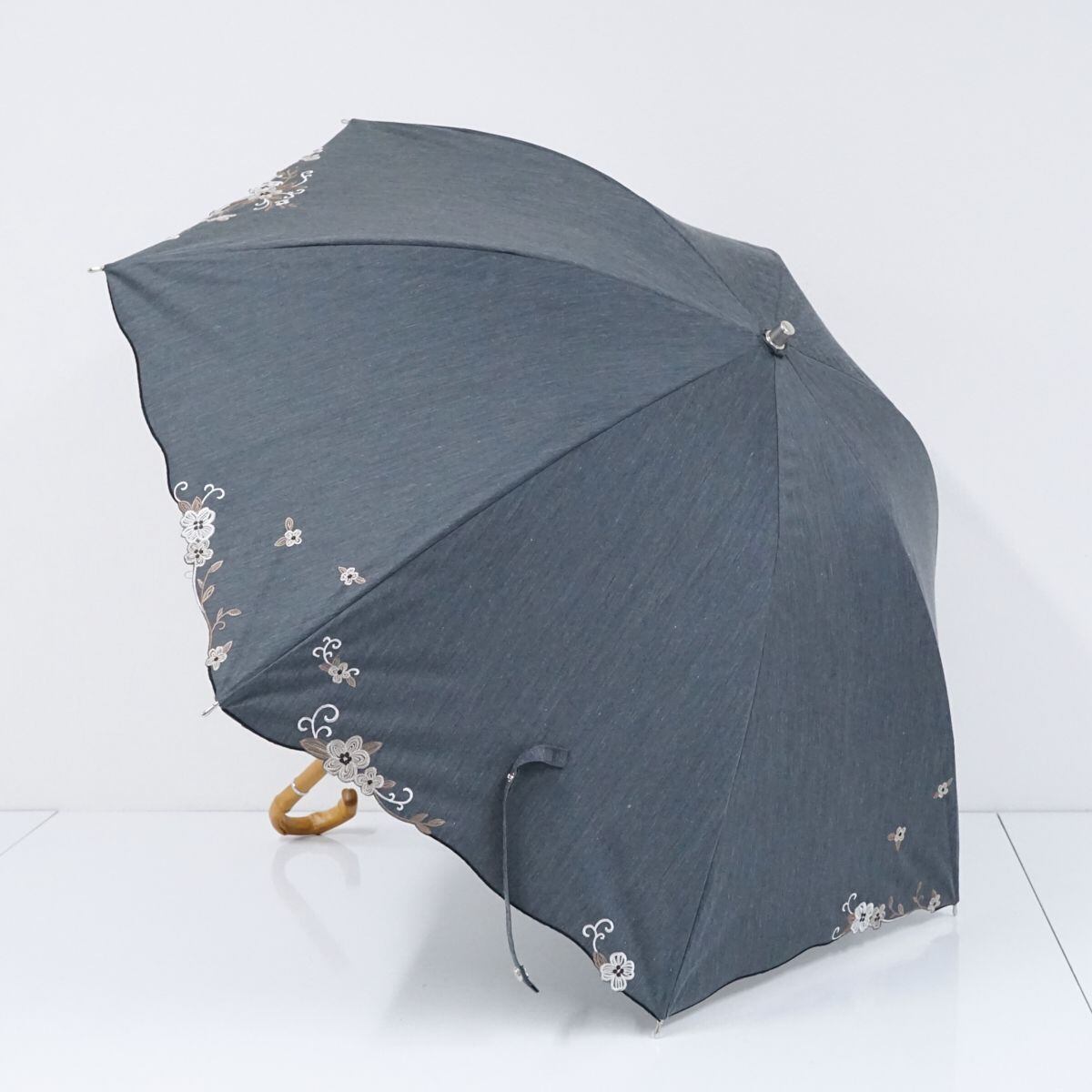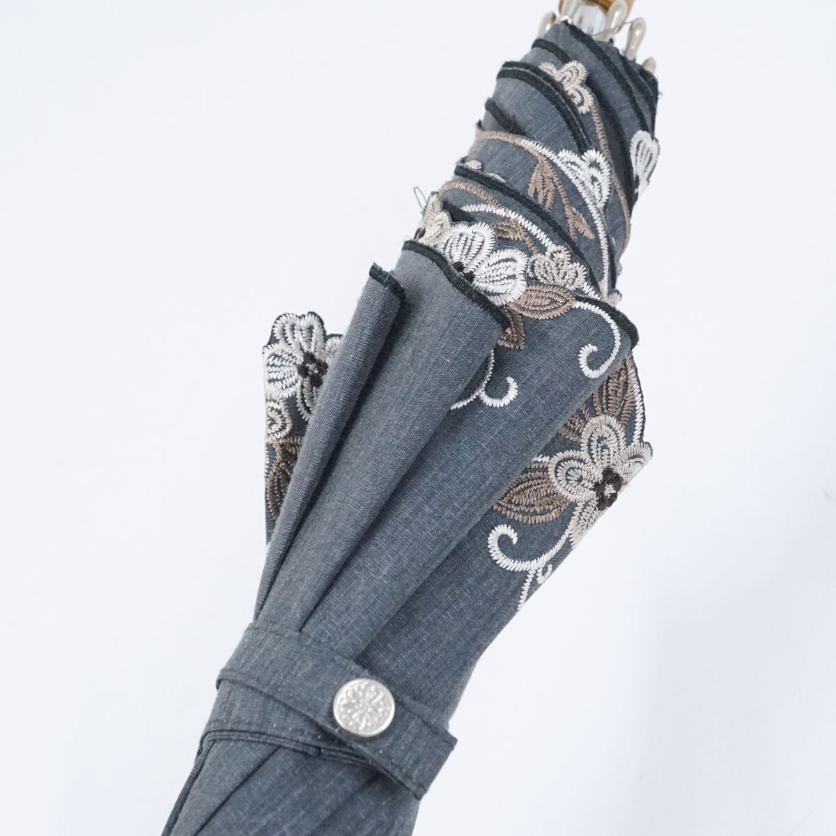 日傘 晴雨兼用 Blao ブラオ USED美品 東レサマーシールドLi グレー シャンブレー フラワー 刺繍 グラス骨 遮光 遮熱 UV 50cm S0971
