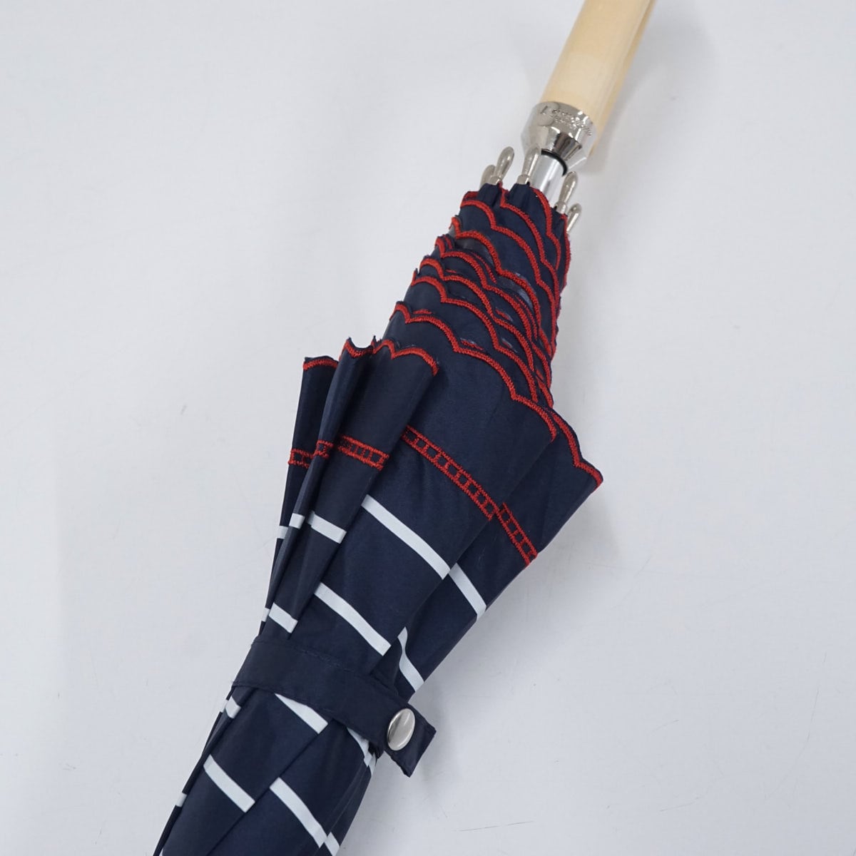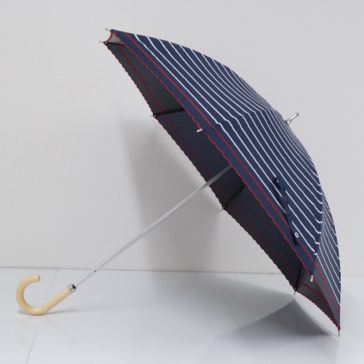 日傘 Aquascutum アクアスキュータム USED美品 イギリス ネイビー ボーダー 刺繍 UV 遮光 晴雨兼用 47cm A2987